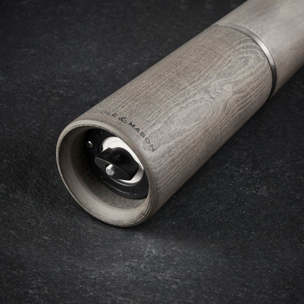 The Cole & Mason Marlow salt & pepper mill set is the perfect balance of stylish sophistication and superior performance. Made from grey-stained beech, the natural beauty to the wood is finished with a gunmetal accent. The Marlow Pepper Mill features the all-new Precision+ mechanism. The new mechanism improves upon the current, award-winning Precision mechanism. They are designed for ultimate efficiency and optimal output; 40% more ground pepper can be released with the same number of turns. Research done by Nottingham University proves that the new mechanism delivers more flavour from the peppercorn. The salt mill still features the diamond sharp ceramic mechanism cutting through the hardest of salts, allowing for a smooth and even turn. You can easily adjust the grind from fine to course with ease; tighten the knob on the top for a finer grind. For peace of mind the Marlow Mill mechanisms come with a lifetime guarantee.