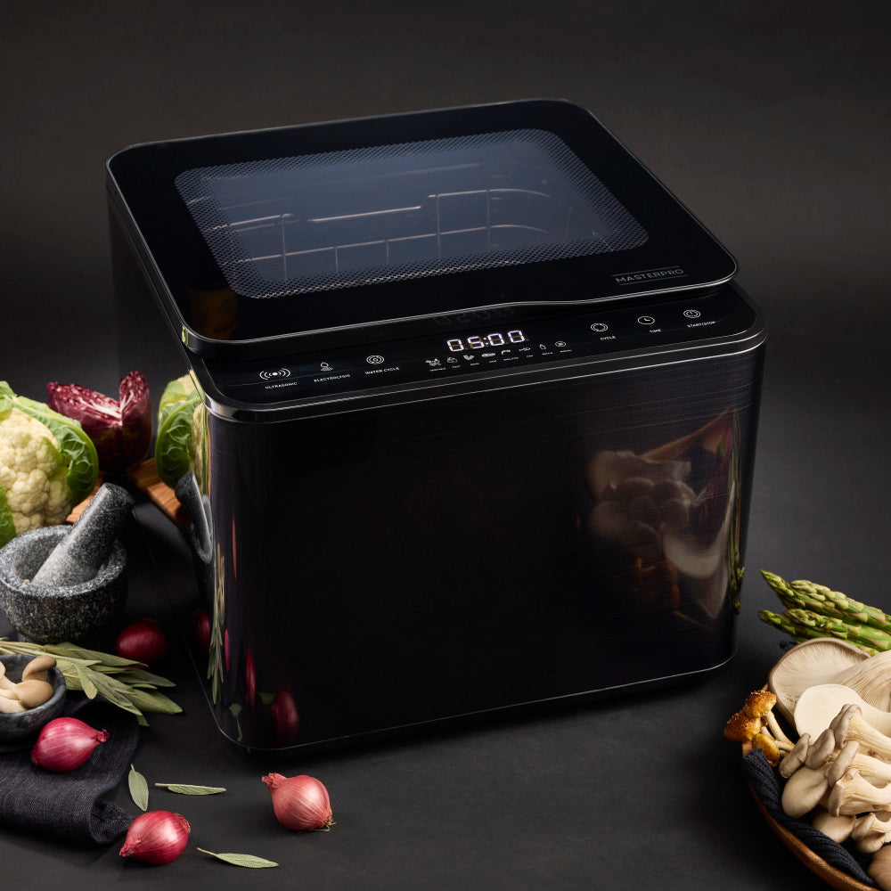 MasterPro is a quality kitchenware brand that equips the home chef with tools to cook like an expert. Our products are designed for superior functionality, durability and style. The XL 10L Deluxe Food Purifier Ultrasonic Cleaner enables you to clean a variety of ingredients, including fruits and vegetables, meat, fish and grains. The Ultrasonic Cleaner uses high-frequency sound waves to create millions of microscopic bubbles that dislodge dirt and grime. It combines with electrolysed water and water cycle generator to sterilise food from germs and harmful pesticide residues. It’s highly effective for cleaning small and stubborn crevices or delicate foodstuffs, leaving them fresh and safe for consumption. Enhance your cooking experience with the XL 10L Deluxe Food Purifier Ultrasonic Cleaner from MasterPro