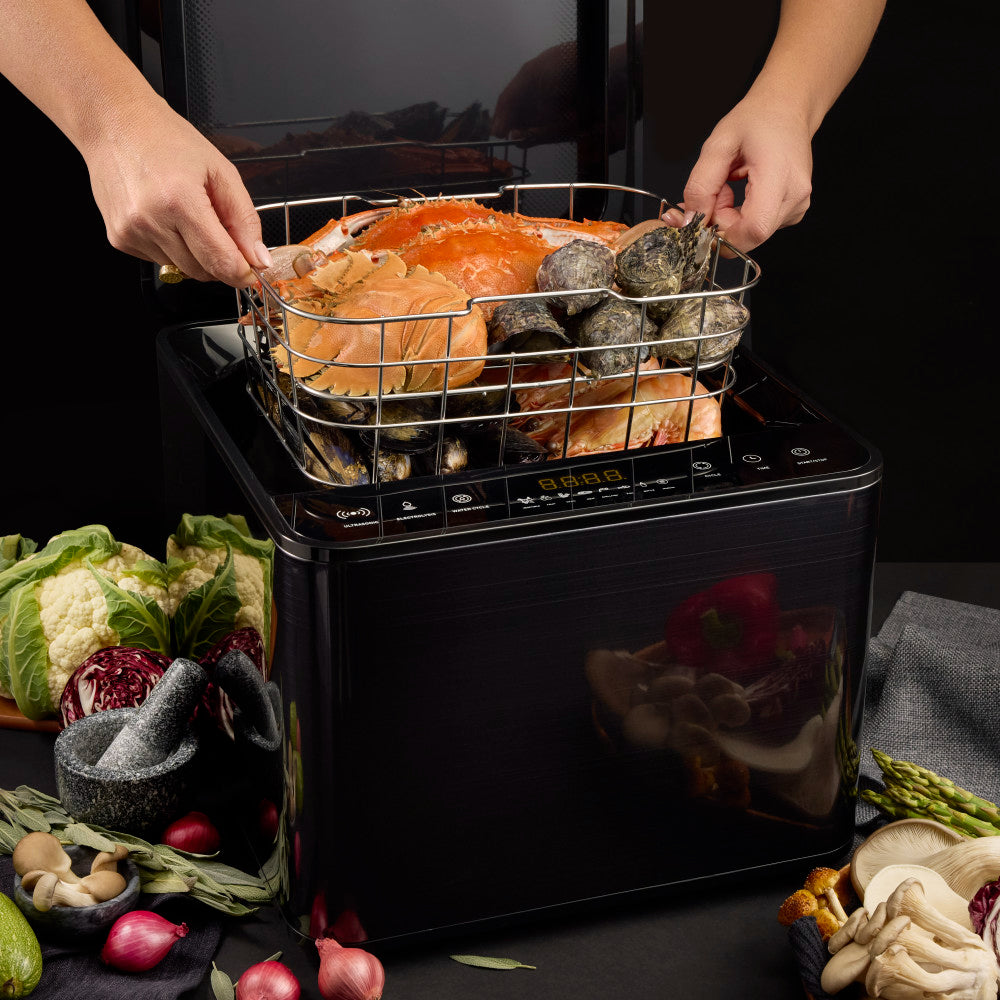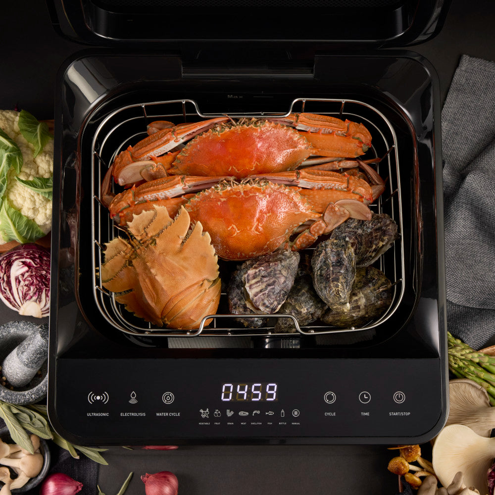 • Uses ultrasonic technology to clean and gently remove dirt• Electrolysis Cleaning to sterilize and remove pesticide residue from food