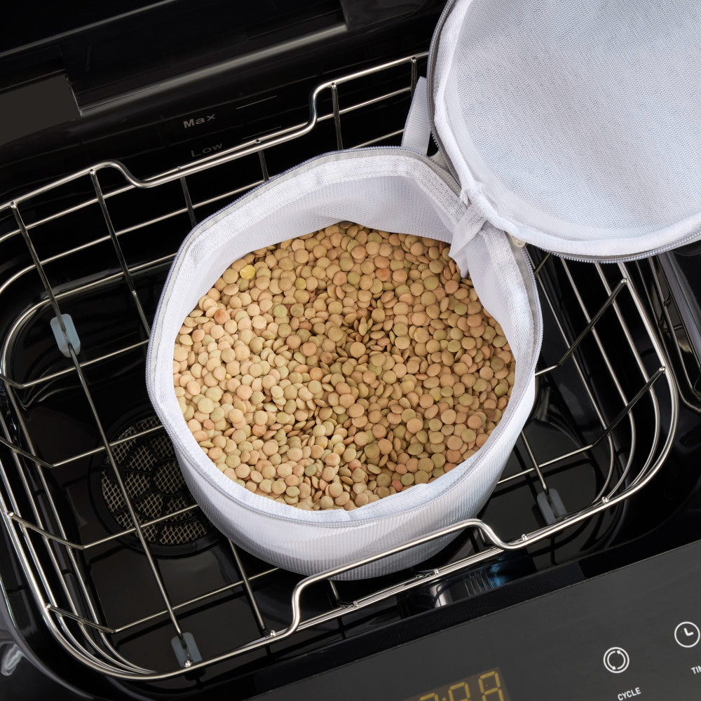 • Includes beautiful stainless steel cleaning basket, drainage tube for ease of use, reusable mesh bag for smaller foods i.e. beans and lentils