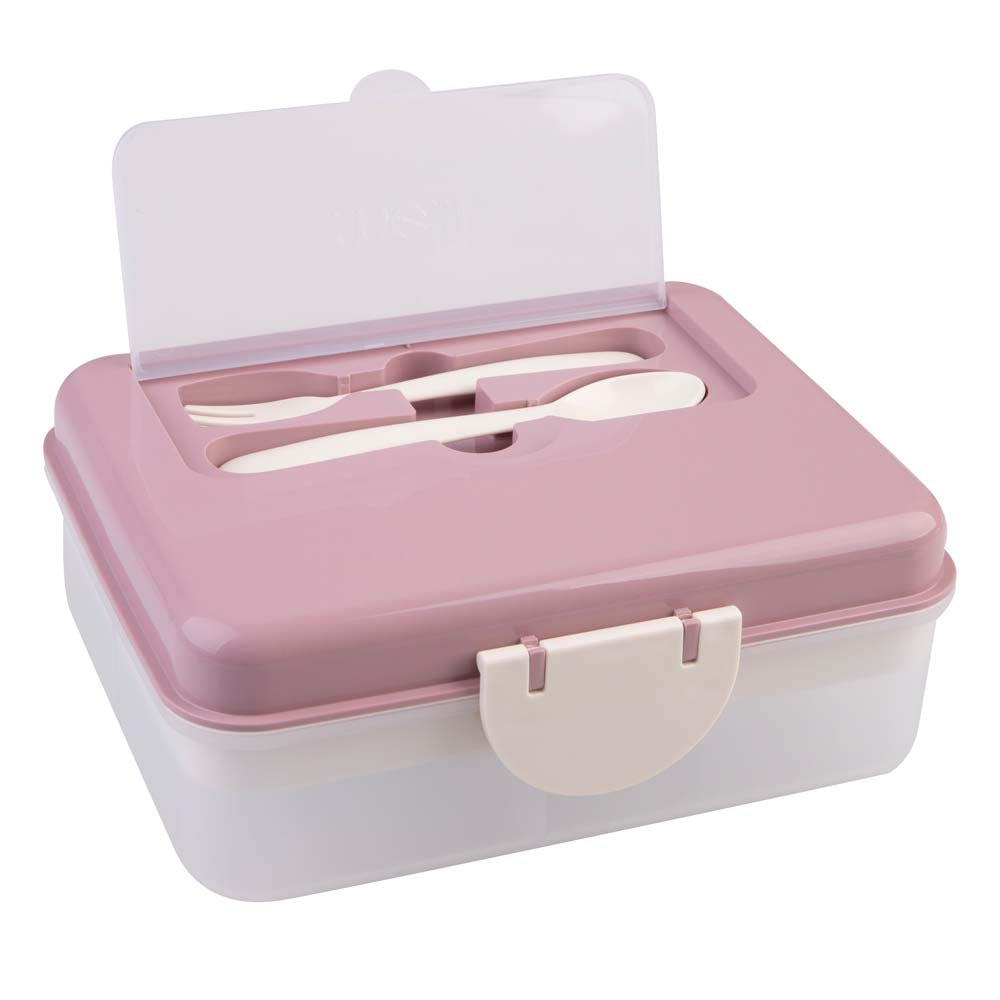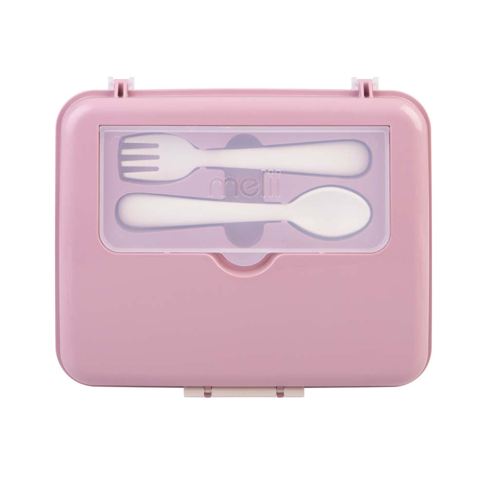 • It comes with a matching integrated spoon and fork, with a separate compartment in the lid.