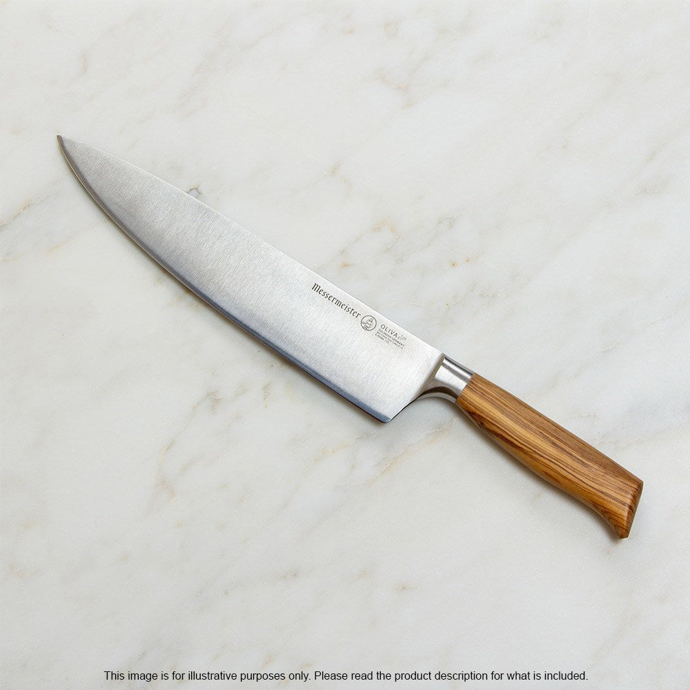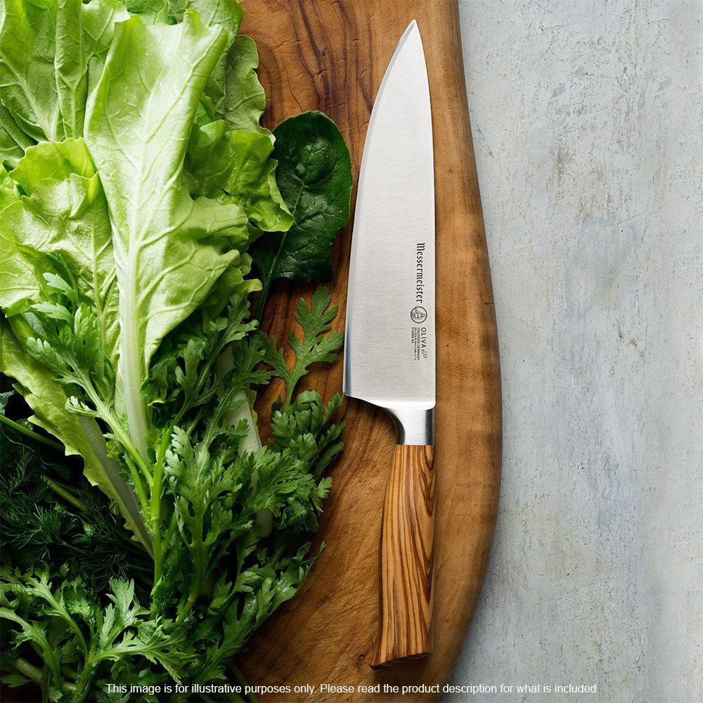 • Full tang blade with chic Mediterranean olive wood handle