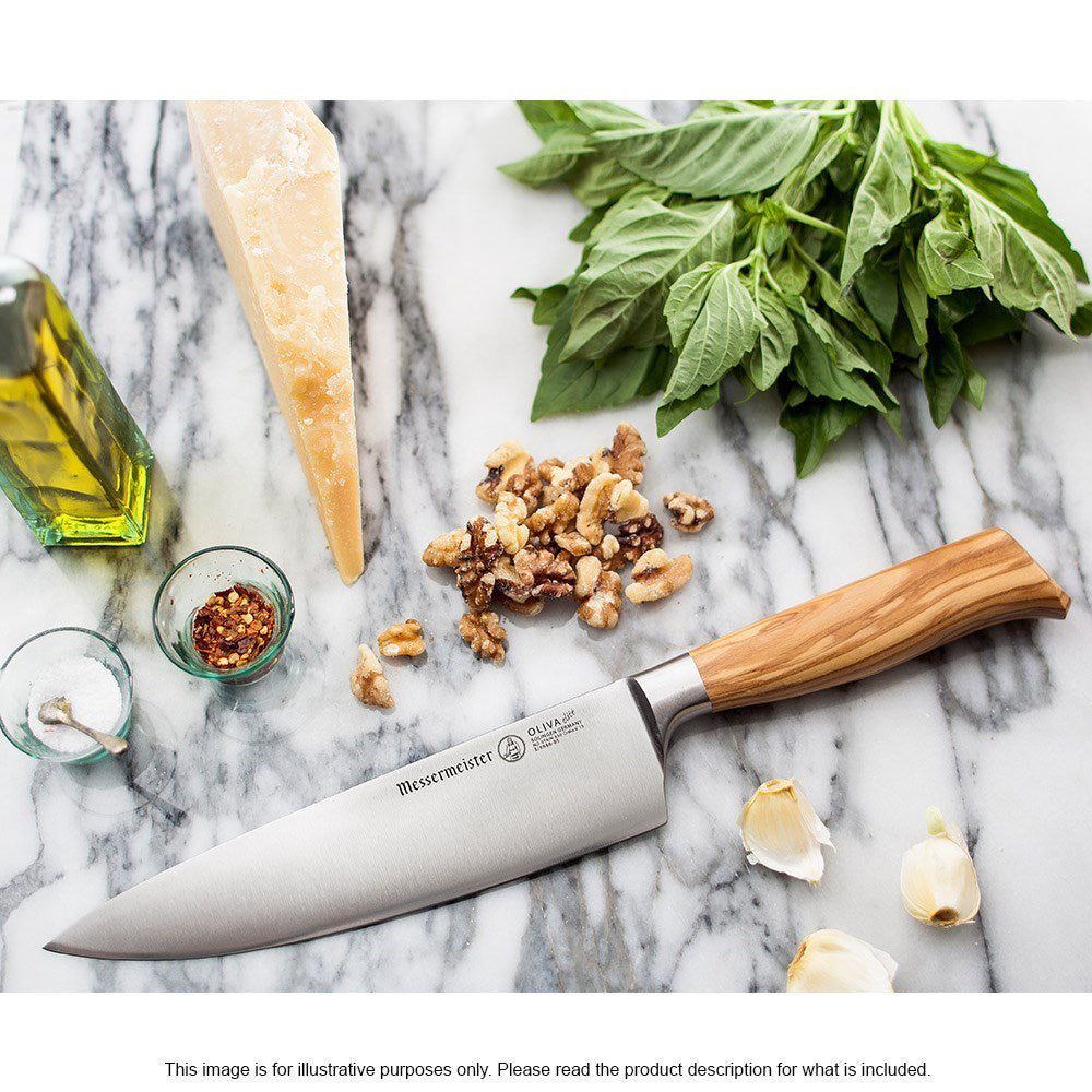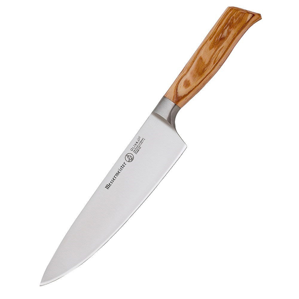 Upgrade your knife collection with the stunning craftsmanship of Messermeister and the Oliva Elite Stealth Chef Knife. Fully forged from the finest quality German steel with a complete tang and a stunning Mediterranean olive wood handle, the Messermeister Oliva Elite Stealth Chef Knife is as attractive as it is useful. Featuring an ingenious bolster-less design that is 25% thinner and 10% lighter than standard blades, the Messermeister Oliva Elite Stealth Chef Knife provides a lightweight, simplified yet superior approach to cutting, sharpening, and honing tasks that makes use of the entire blade from heel to tip. Slice through meats, vegetables, roasts, and more with pure ease and in complete comfort.