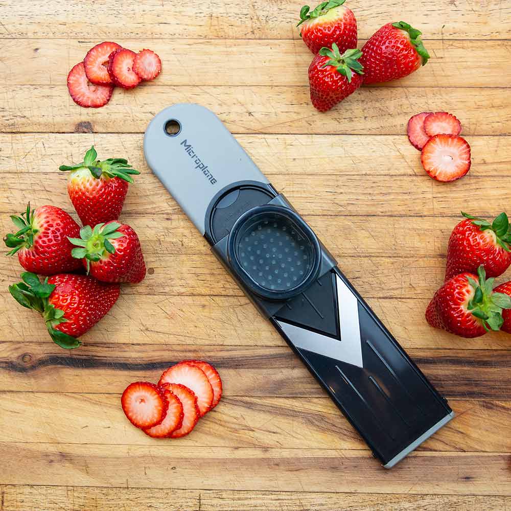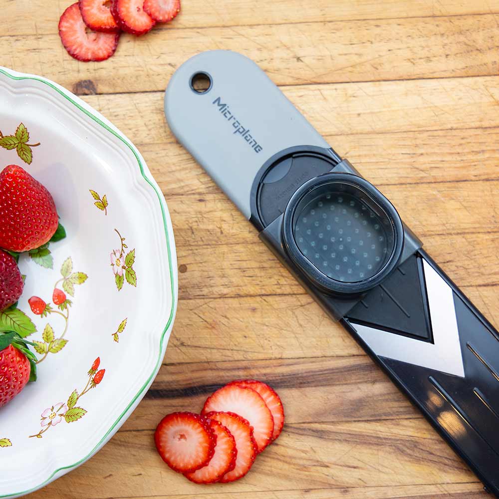 Microplane's Mini Mandoline is the ideal kitchen tool for slicing delicate foods such as mushrooms, strawberries, and eggs. Expertly crafted from premium stainless steel, Microplane's Mini Mandoline guarantees consistent and precise cuts every time.