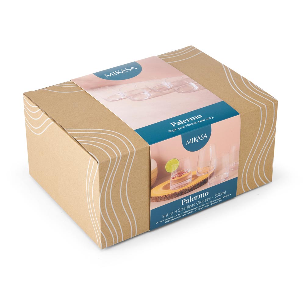 Mikasa Palermo 4 Piece Stemless Wine Glass Set 350ml
