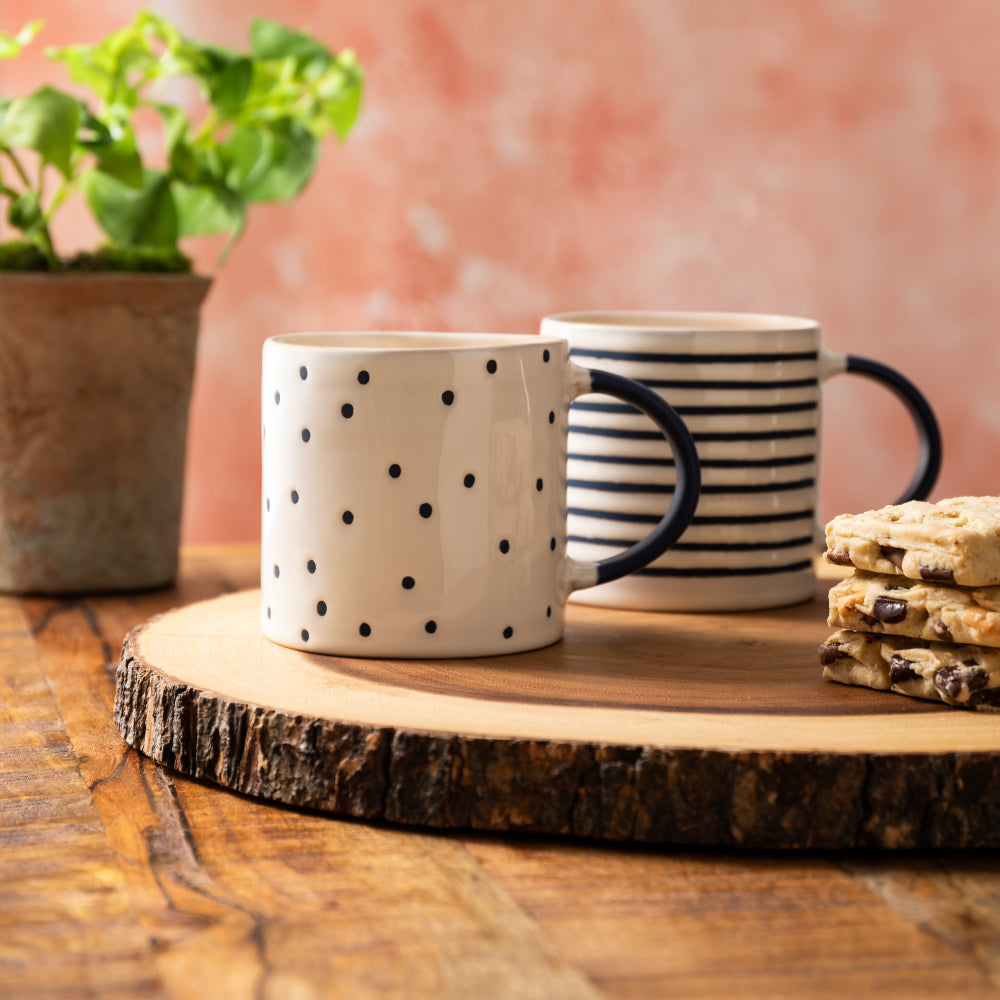 • This mug is available in 2 playful prints – Spot and Stripe• Dishwasher and microwave-safe for added convenience