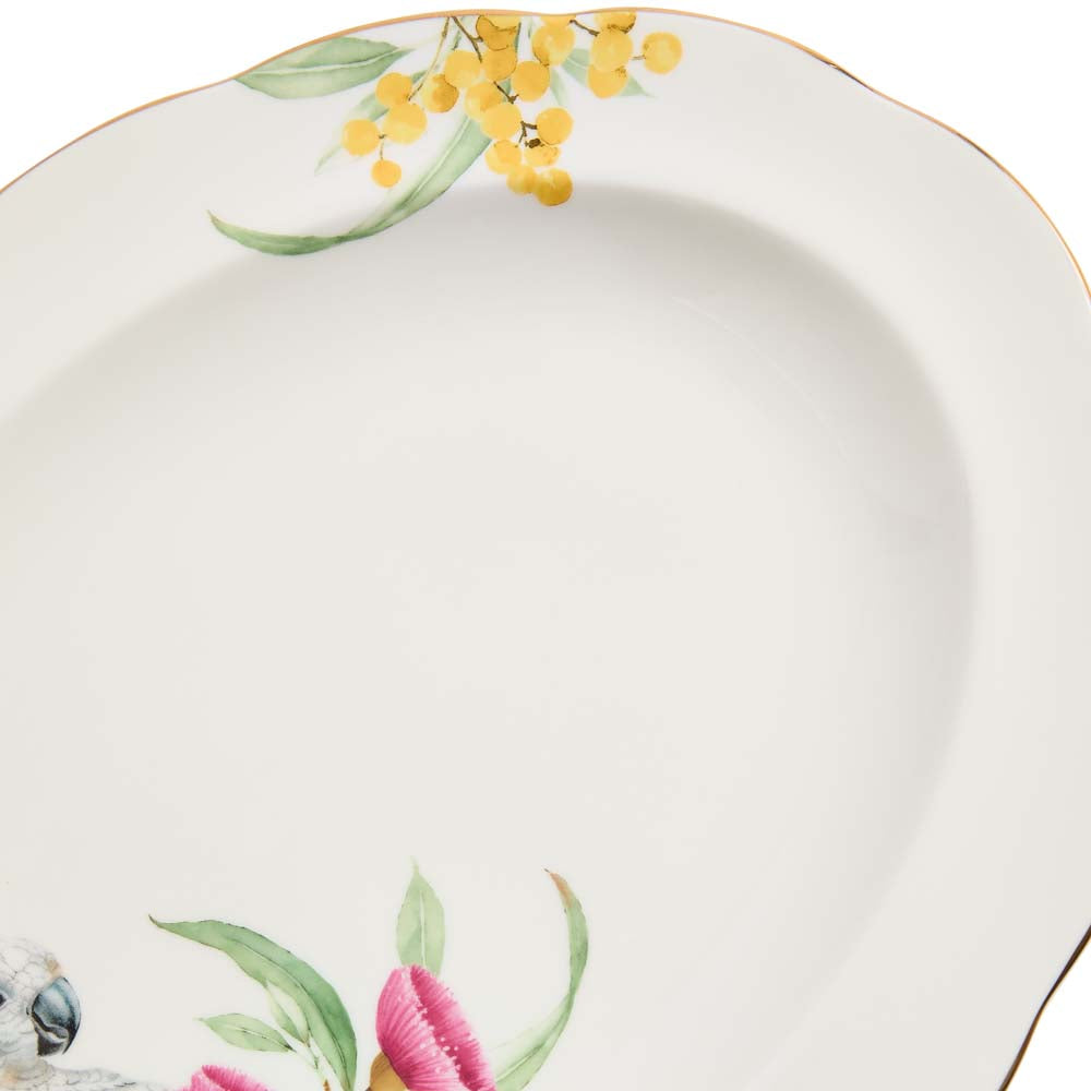 Present your culinary masterpieces on the perfect platter with this fine bone china Miranda Kerr for Royal Albert Australiana Serving Platter 33cm. Inspired by Miranda Kerr's rosy childhood memories spent clambering trees in her grandmother's garden, surrounded by eucalyptus and golden wattle plants, the bright colours, vivid accents and luxurious gold banding make a bold statement on any table.