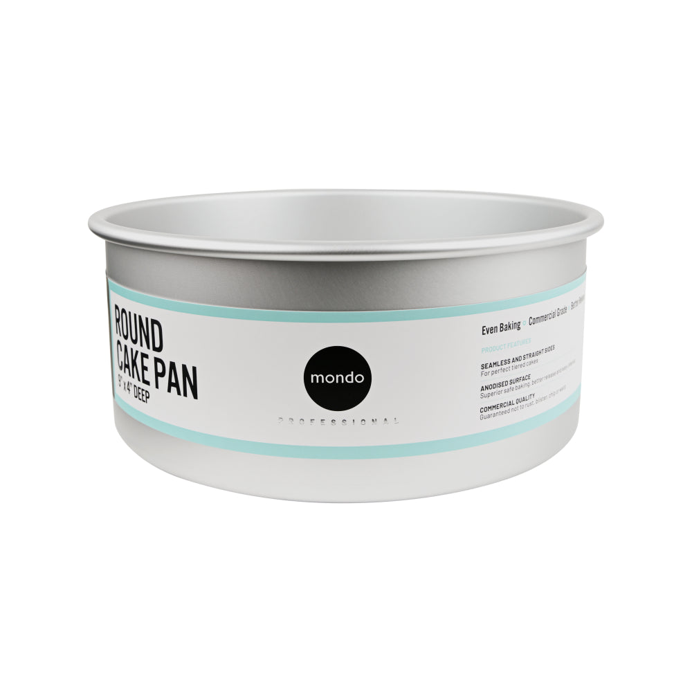 Our Solid base Round ‘Layer’ Cake Pans feature a rolled rim, uniform wall thickness and straight sides which are essential for precise cake tiers. The Pro Series Cake Pan is made from premium 3003 alloy and is anodized. This process gives each pan a hardened and smooth surface for quick heat generation, easy food release, and effortless cleanup. These pans will be part of your everyday baking life. Even with tough handling, the 25 year guarantee ensures these pans will not rust, blister, chip or warp. For best results, hand wash only.