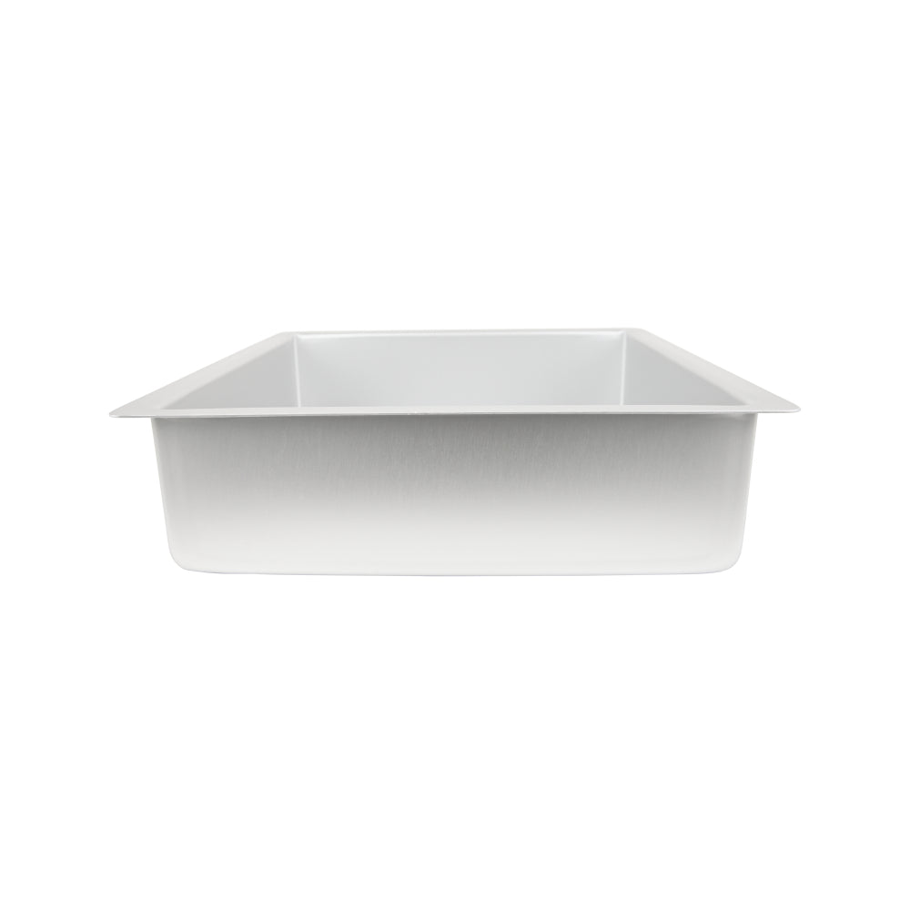 Our exclusive ‘Square-Bake’ Cake Pan’s seamless corner design ensures even baking whilst giving you the sharp corners you demand for layering cakes. Each Square Cake Pan is manufactured from heavy gauge anodized alloy and features straight sides and a 12mm lip on all sides for easy handling. The Pro Series Cake Pan is made from premium 3003 alloy and is anodized. This process gives each pan a hardened and smooth surface for quick heat generation, easy food release, and effortless cleanup. These pans will be part of your everyday baking life. Mondo Square Cake Pan’s 25 year guarantee ensures your cake pan will not rust, blister, chip or warp. For best results, hand wash only.