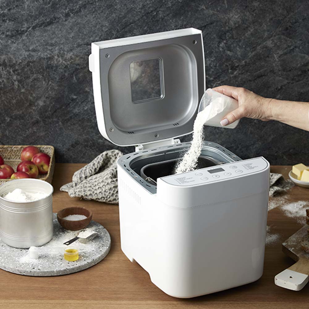 • Includes accessories: 1 non-stick bread pan, 1 dough hook, 1 measuring spoon, and 1 measuring cup