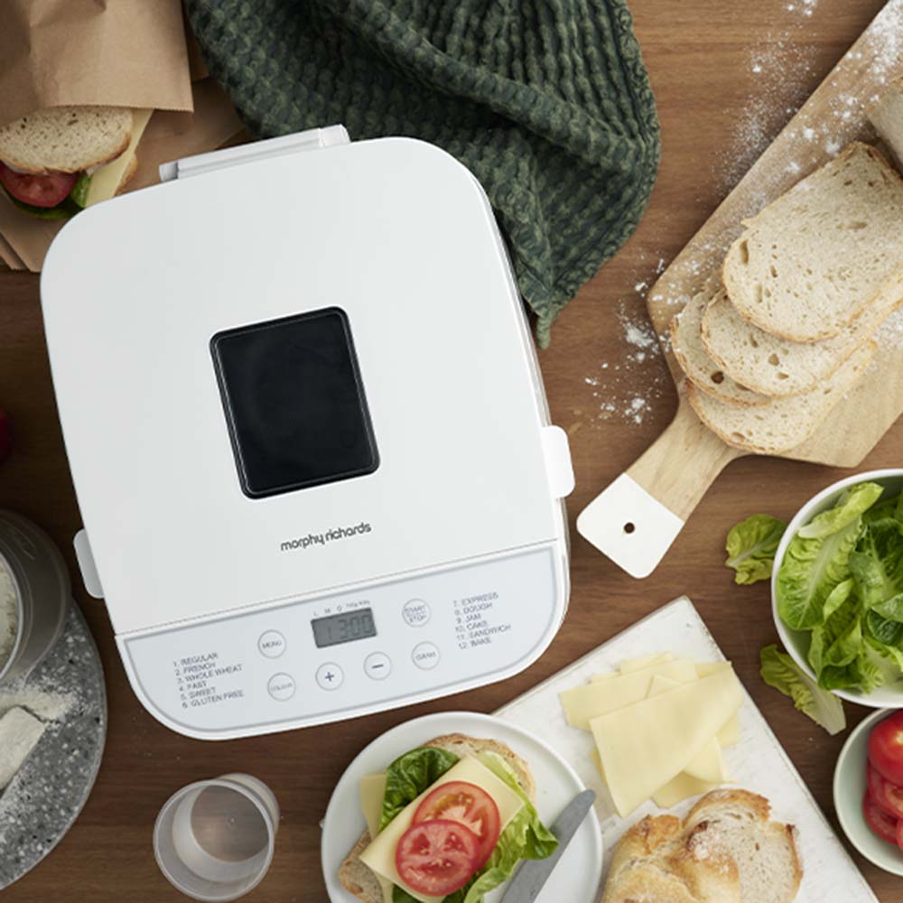 A compact bread maker with 12 baking programs, including Gluten Free, lets you produce not only a variety of different breads but also doughs, jams and cakes. Choose between two different loaf size options and three crust settings before you watch as your bread is kneaded, rises and baked through the large viewing window and the non-stick bread pan means your bread can be easily removed.