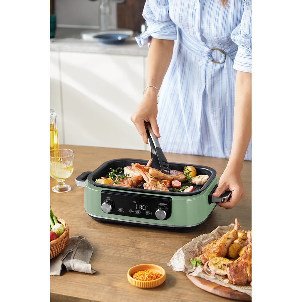 - Grill, slow cook, stew, fry, and steam all in one versatile appliance