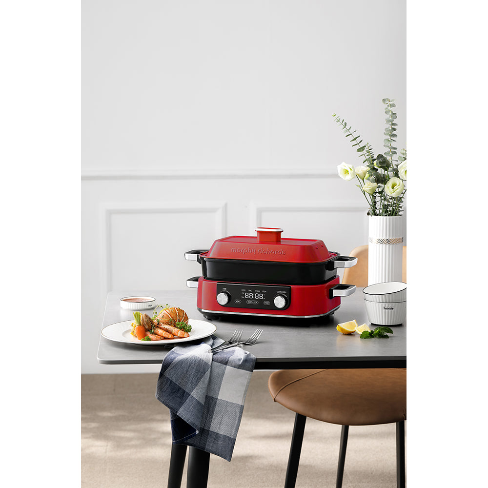 The Morphy Richards Digital MultiPot is your culinary companion for limitless kitchen creativity. This all-in-one marvel grills, slow cooks, stews, fries, and steams with unparalleled finesse. Its showstopping, elegantly engineered design is a treat for the eyes, housing a reinforced deep pan with cool-touch handles and a mighty 1600W cooking plate. Navigate culinary endeavours effortlessly with the intelligent large digital touch screen, featuring a smart menu and preset countdown timer. Meal prep has never been this seamless. Plus, with non-stick coated accessories, cooking is a joy, and cleanup is a breeze. Elevate your kitchen experience with the Morphy Richards Digital MultiPot.