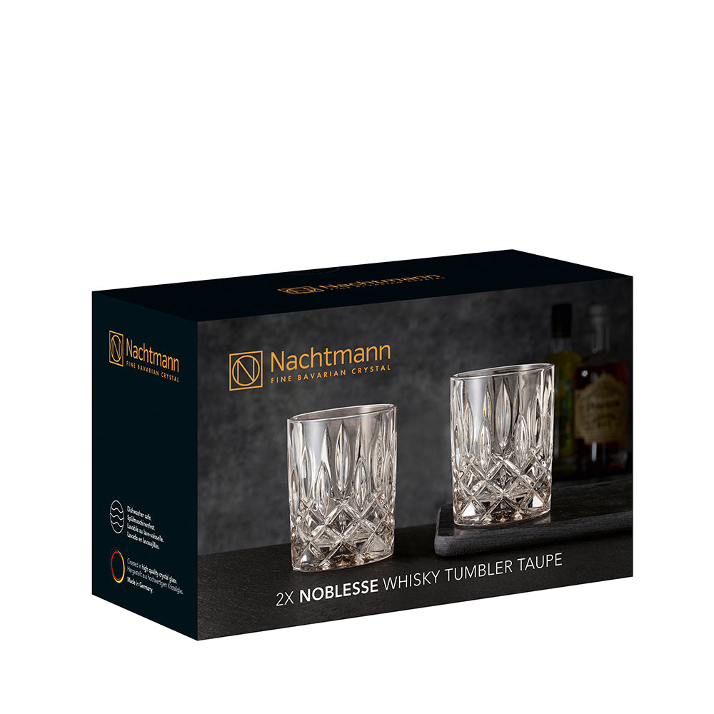Elevate your drinking experience with the Nachtmann Noblesse Whisky Tumbler Set of 2. Crafted in Germany, the Nachtmann Noblesse Whisky Tumbler Set of 2 is meticulously cut from exquisite crystal glass, seamlessly blending timeless design with modern flair. Indulge in the luxury of sipping fine whiskey and artisanal cocktails from these 295ml capacity glasses. Available in rose, taupe, and smoke, these elegant hues add a vibrant touch to your table setting. Whether you're a connoisseur or a casual enthusiast, this tumbler set is the epitome of sophistication and functionality. Embrace the art of refined drinking with the Nachtmann Noblesse Whisky Tumbler Set of 2.