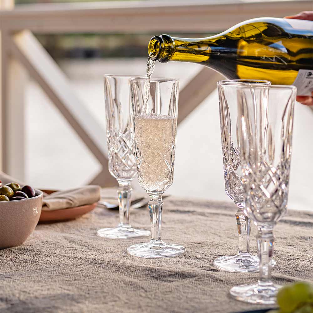 The Nachtmann Noblesse Champagne Glass is perfect for light, fresh, dry champagne, Prosecco and sparkling wines. Its slimline shape is great to encourage the bead in champagne and sparkling wine, making it the choice for those connoisseurs who are after a thin and elegant flute.