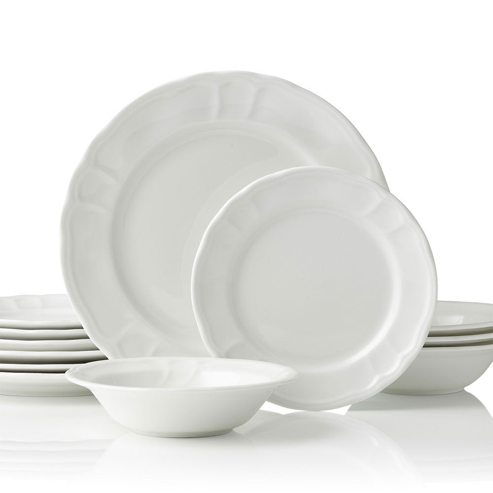 A picture of elegant simplicity, Noritake Baroque White features soft ivory tones and a classical baroque shaped body. Manufactured from ivory porcelain, this pattern is highly durable and extremely versatile, making it ideal for both everyday dining and for more formal dining occasions. Baroque White is chip resistant, dishwasher, and microwave safe.