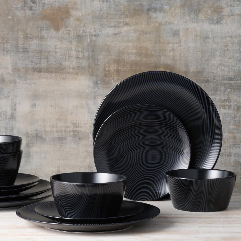 Noritake Black on Black Dune 12 Piece Dinner Setting for 4
