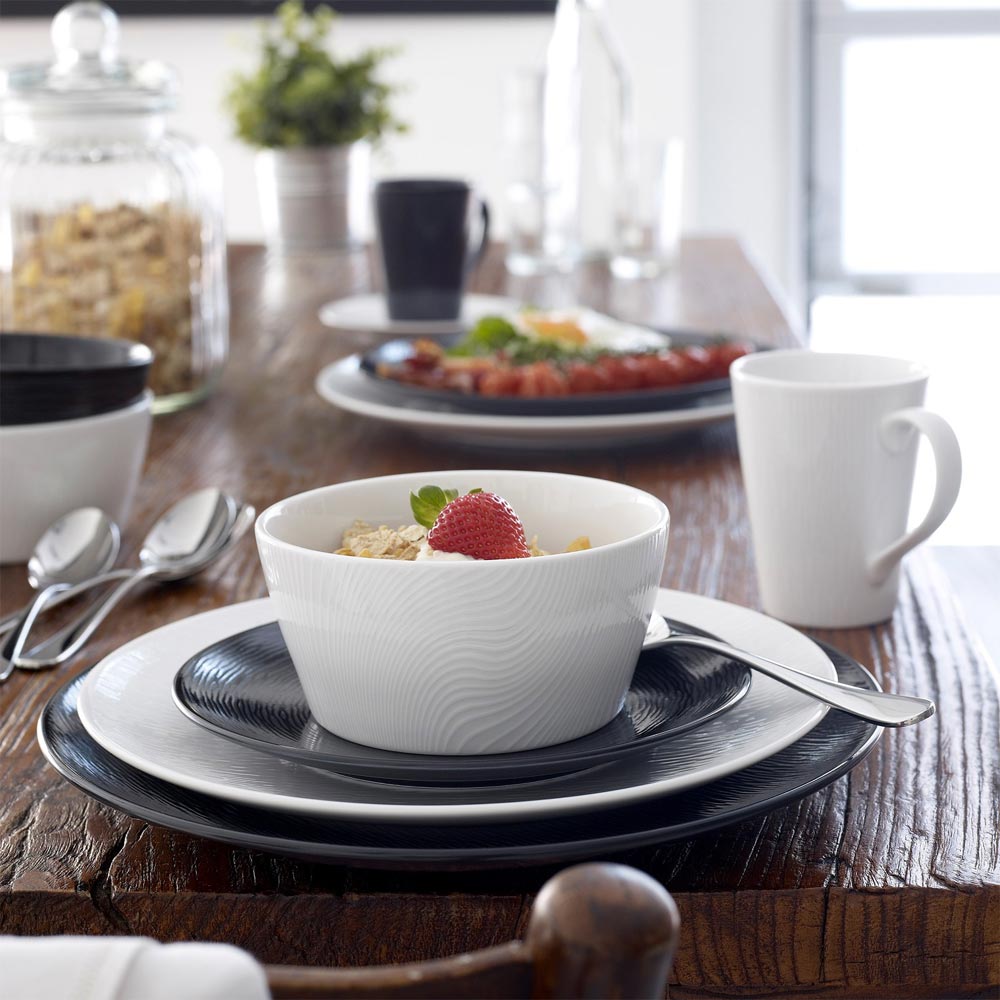 The Noritake Black on Black 12 Piece Dinner Setting for 4 is a stunning dinner set that will complement any home! As part of the Noritake Colorscapes Collection, it features organic motifs subtly interpreted as a tone-on-tone surface direction. Fabulously contemporary, it is crafted from fine porcelain and features a black colourway with coiling concentric circles. Seductive on the eye, the Black on Black Dune is extremely versatile and can be utilised for all types of dining and entertaining. The Noritake Black on Black 12 Piece Dinner Setting for 4 is chip resistant, microwave safe, and dishwasher safe, making it the perfect addition to any entertainer’s kitchen. Mix and match with other colours from the Noritake Colorscapes Collection for extra pizzazz.