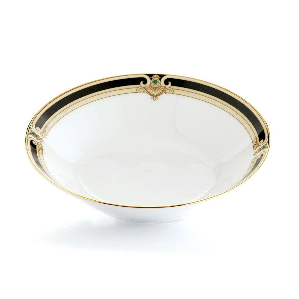 The Noritake Braidwood Dessert Bowl is made with a beautiful and ornate formal design that will add sheer elegance to your table. It features a textured decal in sepia with a dark brown outer band and a repeating shell and scroll motif in the same tones. Each shell is topped with a jewel like accent dot of emerald green and is trimmed in 22K gold to add an elegant finishing touch. A genuine classic that you will enjoy for years to come, the Noritake Braidwood Dessert Bowl combines contemporary sensibilities with a more traditional rustic feel and is ideal for all dining occasions. Made from porcelain, the Noritake Braidwood Dessert Bowl is chip resistant and is dishwasher safe for convenience. Mix and match with other items in the Noritake Braidwood range for a beautiful co-ordinated table.