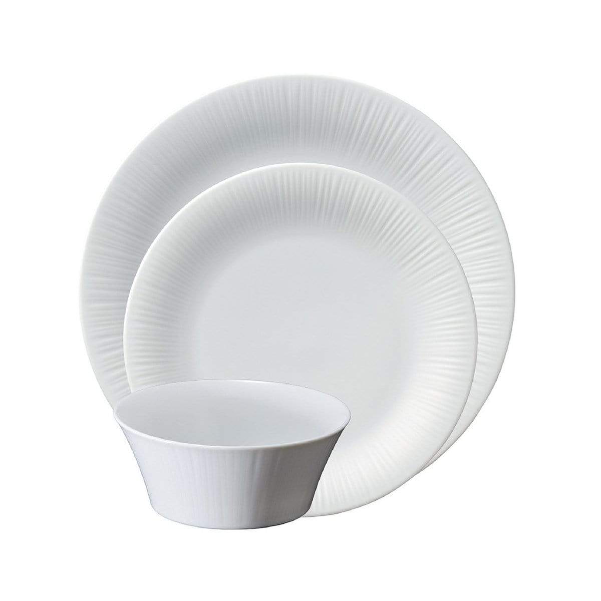 Enhance your home dining aesthetic with the elegant and simple Noritake Conifere Fine White Porcelain 12-Piece Dinner Set! Comprising of four dinner plates, four entrÈe plates and four bowls, this set is suitable for both casual and formal dining occasions and makes a wonderful addition to your serve ware collection. Each piece is designed with soft organic shapes and features a delicate, etched ëpleatingí effect on the rim for a touch of textural appeal. Made from premium quality fine white porcelain, this dinner set offers a beautiful backdrop for all of your culinary creations and offers lasting durability to withstand daily use. Dishwasher safe for fuss-free cleaning and your convenience, the Conifere 12-Piece Dinner Set is the ultimate easy way to bring timeless style and quality to your dining table!