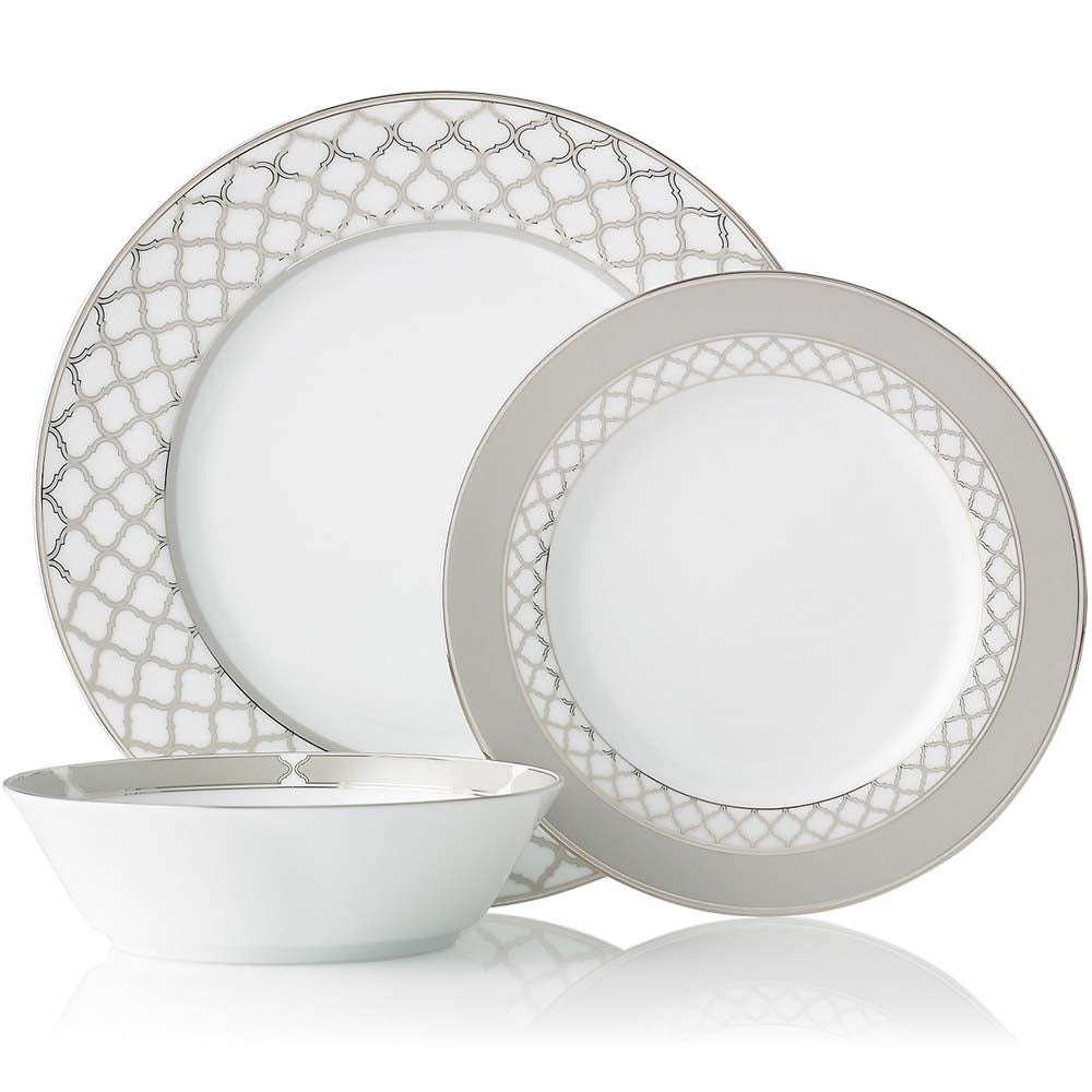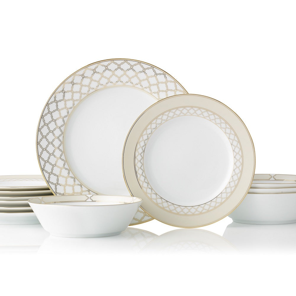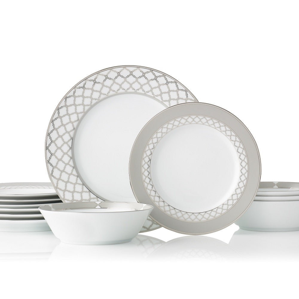A gorgeous backdrop no matter the occasion, the Noritake Eternal Palace 12 Piece Dinner Set makes an impressive display on the tabletop. Inspired by the architecture and motifs of the historic Palais Royal in Paris, the Noritake Eternal Palace 12 Piece Dinner Set features a sophisticated geometric Moroccan trellis pattern combined with gorgeous tones and stunning banding. This set, crafted from fine white porcelain, offers an elegant aesthetic, yet it's durable and chip resistant for long-lasting enjoyment. Four entree plates, four dinner plates and four bowls are included in the set, which is dishwasher safe for fuss-free cleaning. A stunning modern take on a classic design, the Noritake Eternal Palace 12 Piece Dinner Set slots in with a variety of existing decor styles. Boxed beautifully, it makes a thoughtful gift for housewarmings and other special occasions.