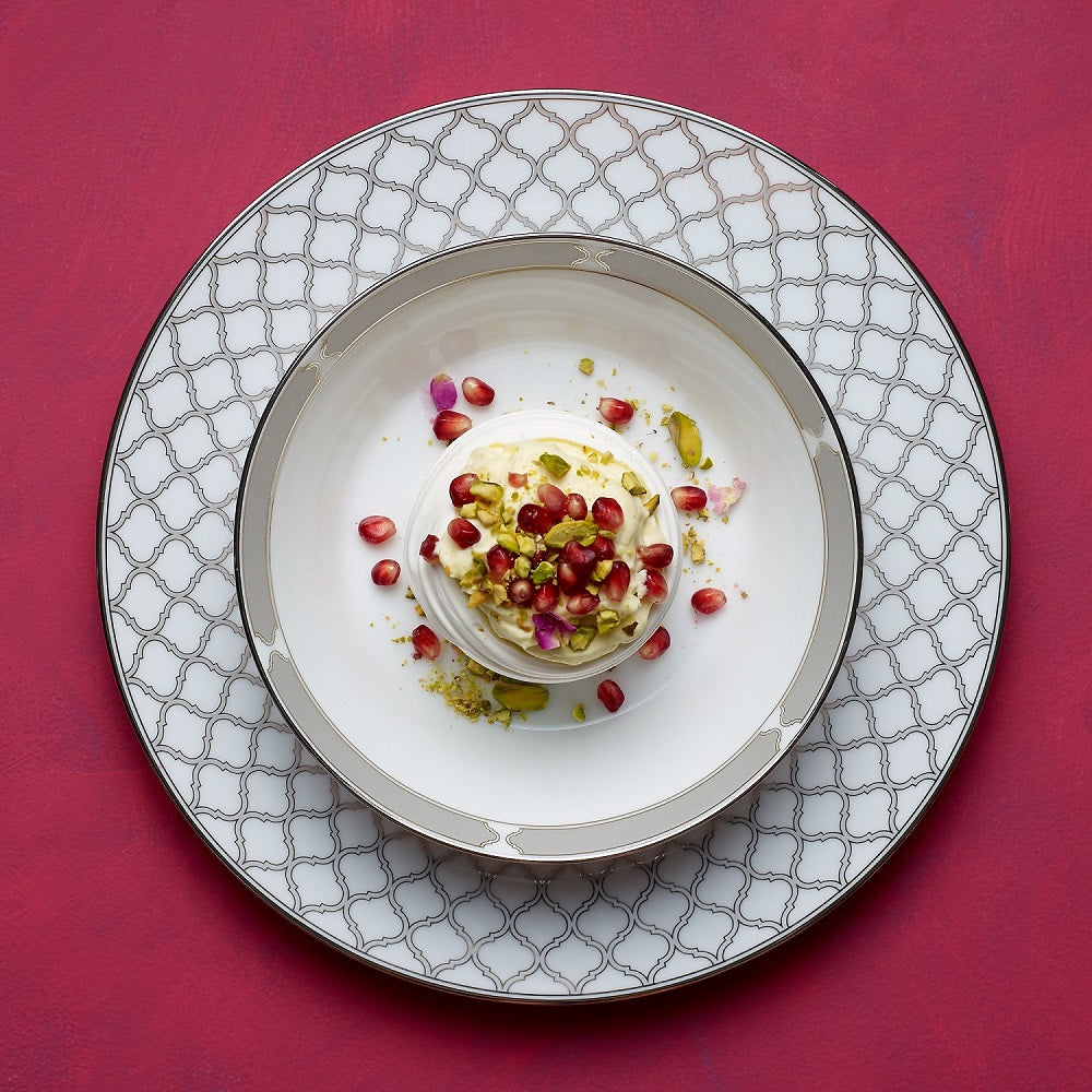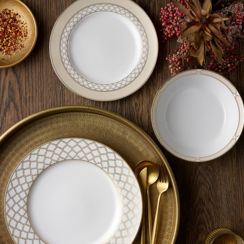 • Available in silvery grey with platinum banding or warm ivory with gold banding