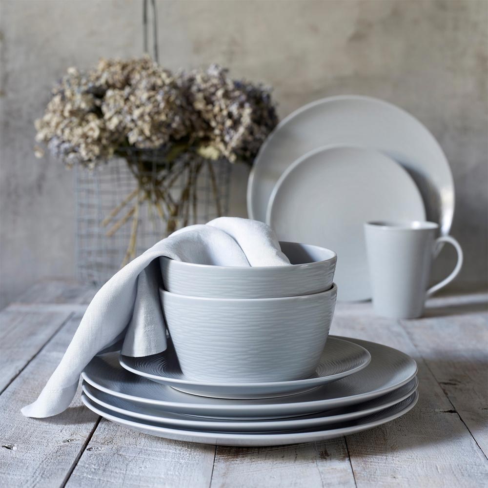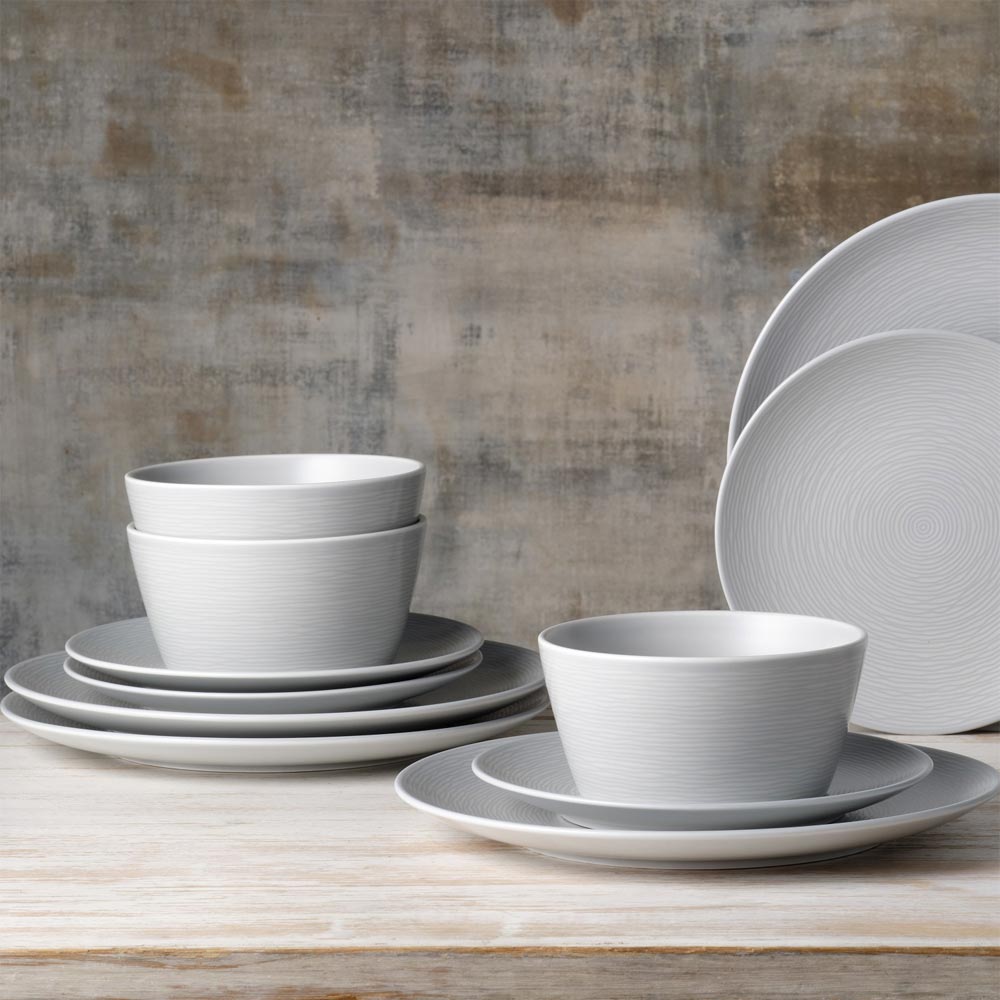 Noritake Grey on Grey Swirl 12 Piece Dinner Setting for 4