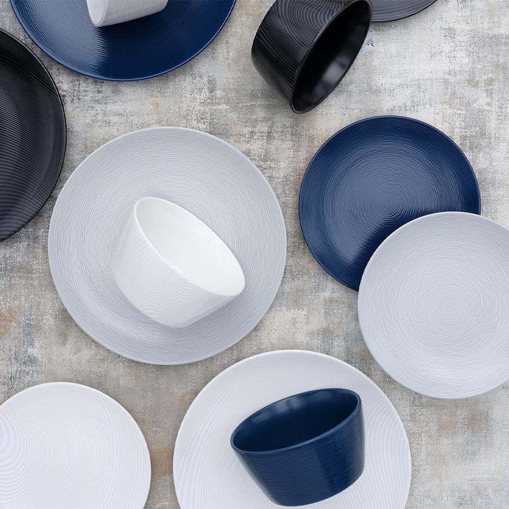 The Noritake Navy on Navy 12 Piece Dinner Setting for 4 is a stunning dinner set that will complement any home! As part of the Noritake Colorscapes Collection, it features organic motifs subtly interpreted as a tone-on-tone surface direction. Fabulously contemporary, it is crafted from fine porcelain and features a navy colourway with coiling concentric circles. Seductive on the eye, the Navy on Navy is extremely versatile and can be utilised for all types of dining and entertaining. The Noritake Navy on Navy 12 Piece Dinner Setting for 4 is chip resistant, microwave safe, and dishwasher safe, making it the perfect addition to any entertainer’s kitchen. Mix and match with other colours from the Noritake Colorscapes Collection for extra pizzazz.