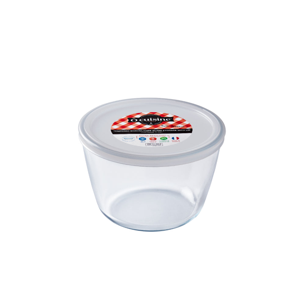 O cuisine features high quality and performance French-made cookware, suitable for everyday use in the kitchen. The O Cuisine Round Storage Dish is made with borosilicate glass, with a thermal shock of 220°C, it is the only glass that allows direct usage from freezer to oven. Beautifully shaped glass cookware and storage. With the added lid, the product is great for taking on-the-go and/or for storing leftovers in the fridge or freezer.