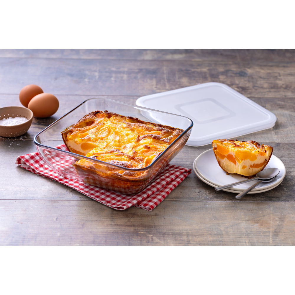 O cuisine features high quality and performance French-made cookware, suitable for everyday use in the kitchen. The O Cuisine Square Storage Dish is made with borosilicate glass, with a thermal shock of 220°C, it is the only glass that allows direct usage from freezer to oven. Beautifully shaped glass cookware and storage. With the added lid, the product is great for taking on-the-go and/or for storing leftovers in the fridge or freezer.