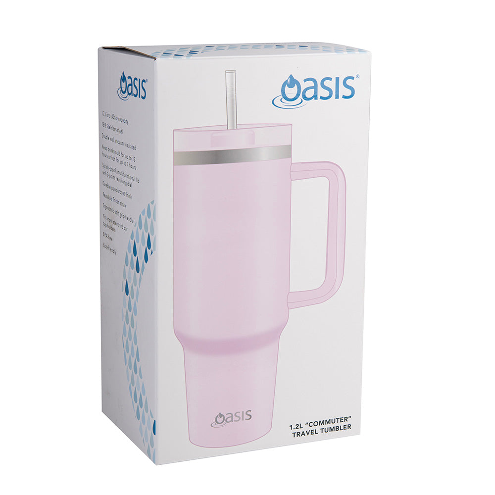 Sip in style as you navigate your day with the Oasis Commuter Double Wall Insulated Travel Tumbler 1.2L, featuring an ergonomic soft-grip handle and a convenient base that seamlessly fits into your car cup holder. Whether you crave icy freshness for 12 hours or steaming hot comfort for 7, this tumbler delivers. The splash-proof lid, with its innovative three-point revolving dial, effortlessly transforms from a Tritan straw to an open spout, sealing tight with just three twists. With a generous 1.2L capacity and a chic powder coat finish, the Oasis Commuter Double Wall Insulated Travel Tumbler 1.2L is your eco-friendly, fashionable hydration companion.