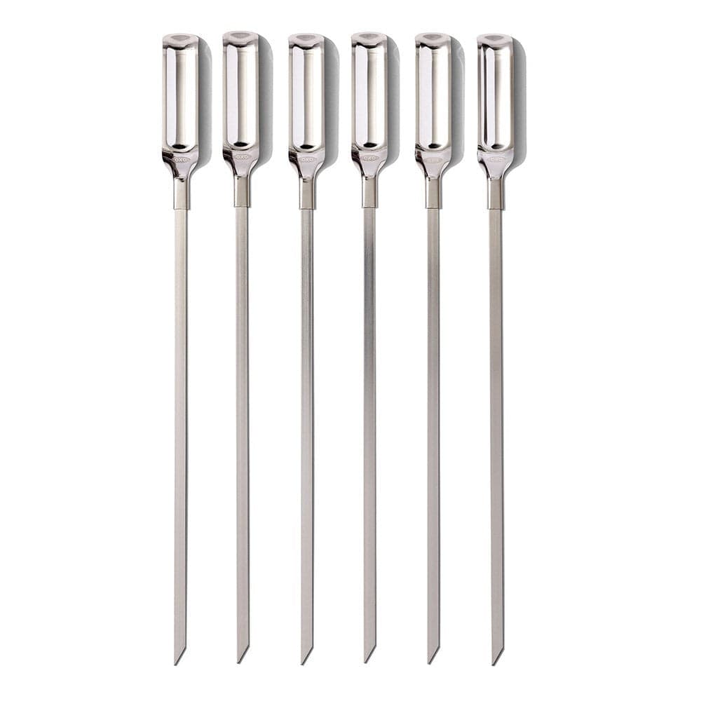 Up your BBQ game with help from the OXO Good Grips 6 Piece Grilling Skewer Set.