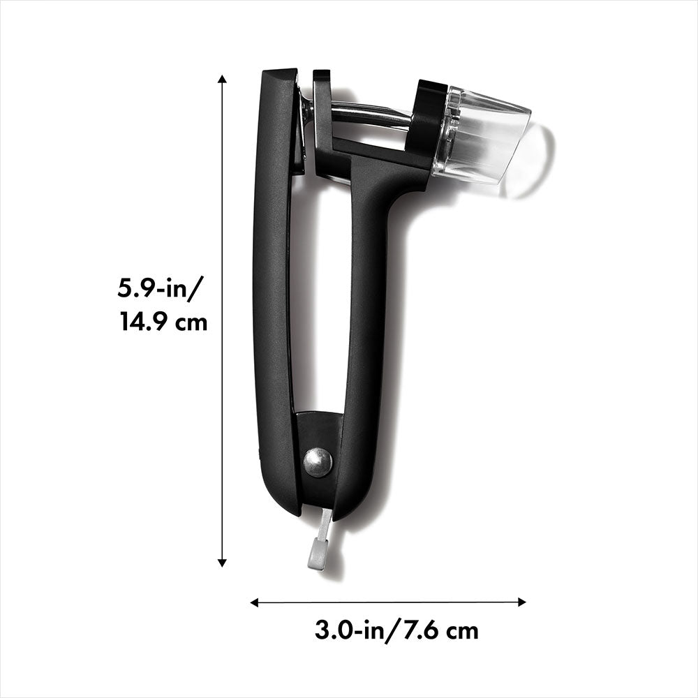 The Good Grips Cherry and Olive Pitter is a tool every busy kitchen needs! It cleanly removes pits without splattering thanks to the removable splatter shield that contains the juices. The sturdy die-cast zinc construction makes quick work of pitting olives and cherries, and the larger hole prevents pits from becoming trapped inside. It has a non-slip handle, is easy to clean, and is dishwasher safe.