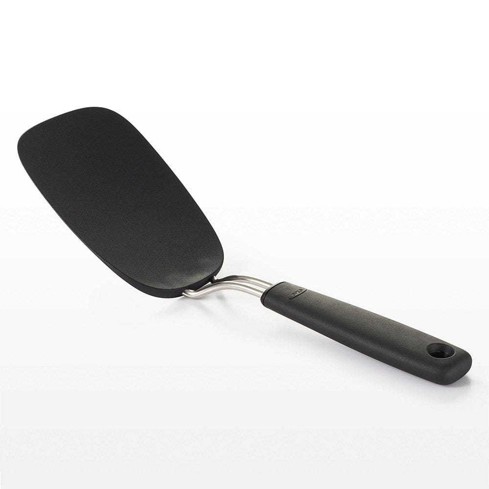 Make cooking and serving easy by using the right tools, like the OXO Good Grips Large Flexible Nylon Spatula. This essential cooking accessory is the perfect utensil for flipping and serving pancakes, crepes, burgers, and delicate foods like fish fillets. Made using a durable stainless steel skeleton and lightweight head, the OXO Good Grips Flexible Spatula is sturdy in the hand but soft and flexible enough to bend and slip under a wide array of foods in sauté and frypans or on cookie sheets and baking trays. The nylon head is not only flexible but extremely heat resistant and non-scratch, making it perfect for your non-stick and cast iron cookware. Fitted with a soft non-slip cushion handle, the OXO Good Grips Large Nylon Spatula provides a secure and comfortable grip throughout use.
