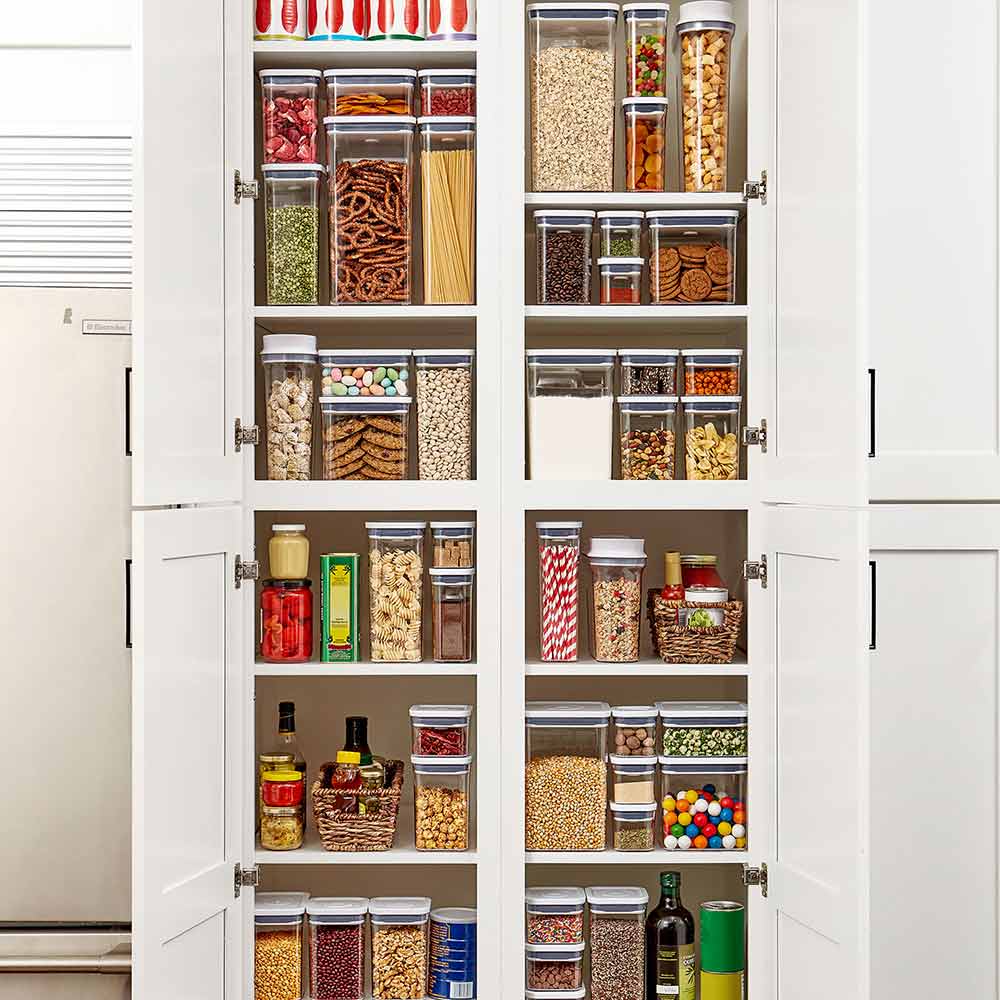 The OXO Good Grips 20-Piece POP Container Set is an organisation game-changer. Perfect for registries, new shapes and sizes mean new possibilities for storing everyday must-haves like flour, sugar, coffee, cereal, oatmeal, coffee, grains, pasta, and spices. Airtight, stackable, space-efficient, and now completely dishwasher safe, these containers can be customised to fit any space. We refreshed POP to include a handy fill line and kept the curved corners for smooth dispensing. BPA-free POP Containers aren’t just for kitchens: use them any place you want more organisation. For best results, always use the button to open and close. Do not carry POP Containers by the lid. Complete your kitchen with the coordinating OXO collection.