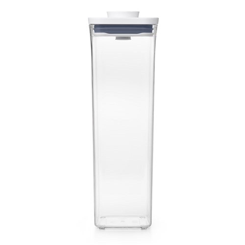 The Oxo Pop 2.0 Small Square Tall 2.1L is designed with space-saving in mind. The square shape makes it pantry-friendly, while the tall 2.1 litre capacity body can hold items such as spaghetti, candy and chips comfortably. A push of the button activates the airtight seal, keeping dry food staples fresh for longer. Stackable and space-efficient, the Oxo Pop 2.0 Small Square Tall 2.1L is designed for modular use, so you can organise in any number of height combinations to fit your countertop and pantry. This transparent square container is easy to disassemble for cleaning and is now top rack dishwasher safe for convenience. All new Oxo Pop containers can stack perfectly with existing Pop containers for you to easily integrate them into your collection.