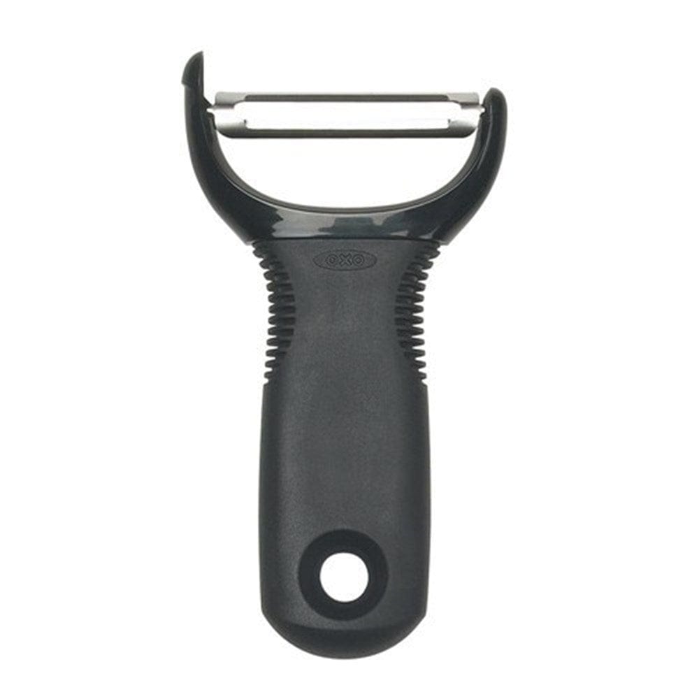 Introduce the OXO Y Peeler to your kitchenware collection. Made with a sharp stainless-steel blade that is designed to make peeling a breeze, the peeler is a practical and essential for any home kitchen. The OXO Y Peeler takes off the tough outer layer of fruit and vegetable skins, while leaving all the good stuff perfectly intact underneath. With a built-in potato eyer, the OXO Y Peeler is the perfect kitchen assistant for prepping mashed potatoes and more. The peeler benefits from an ergonomic handle that is comfortable to hold and is dishwasher friendly for easy cleaning after use.