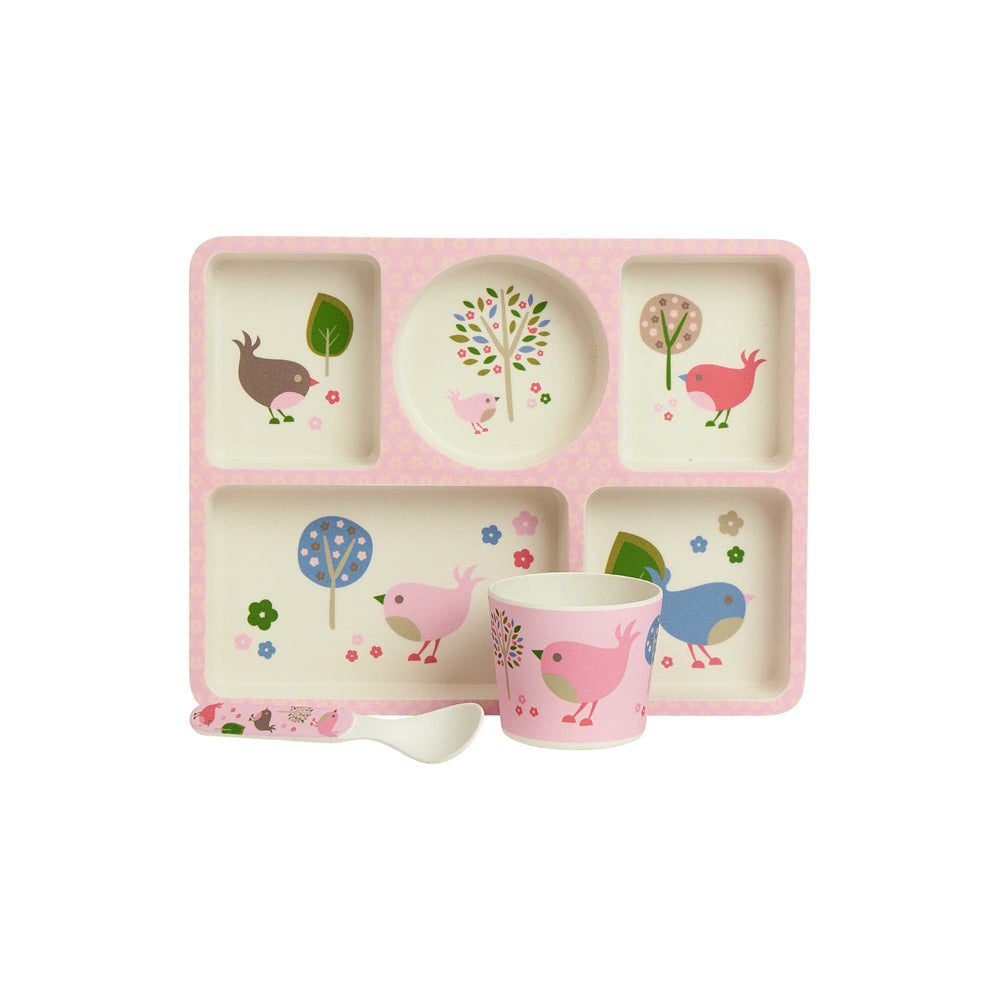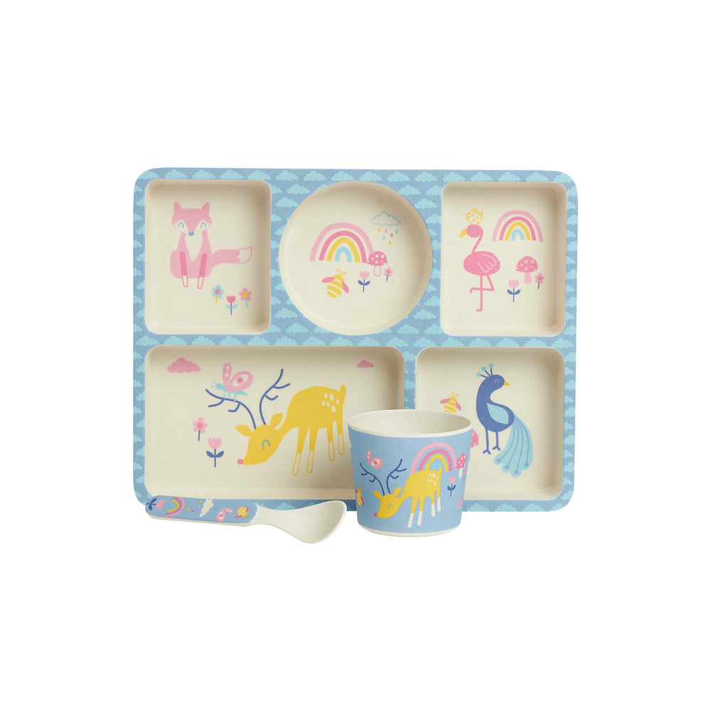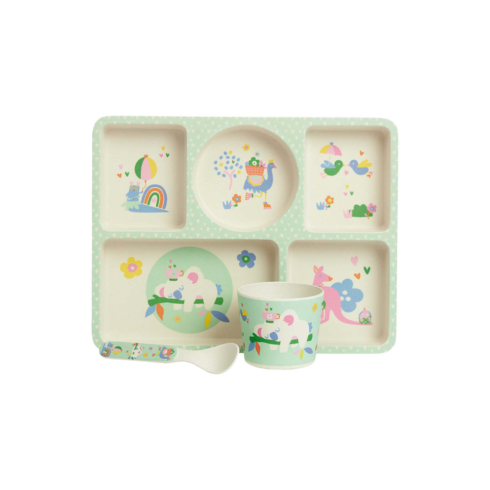 Stimulate your little munchkin's taste buds with the vibrant Penny Scallan Bamboo Divided Plate Set, perfect for even the pickiest eaters. With excellent durability for everyday use, Penny Scallan’s Bamboo Divided Plate Set is crafted from lightweight, sustainable bamboo fibre making it more eco-friendly than plastic and far more durable than ceramic. Including a 5-section divided plate, a cup, and a spoon, the set has everything you need to serve your child delicious and nutritious meals at any time of the day, plus it's totally dishwasher safe for an effortless clean up. A fantastic starter set for little ones learning to eat independently, the plate features adorably cute designs in each of the five sections to keep them interested and help them decide what food goes where. Guaranteed to make mealtimes more fun and exciting, the Penny Scallan Bamboo Divided Plate Set coordinates with a range of matching-themed products and other eye-catching and practical kid's accessories from Penny Scallan!