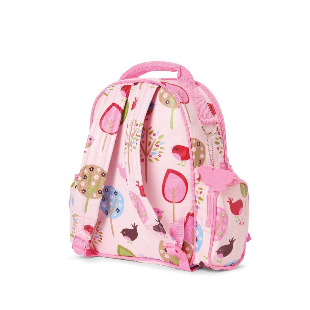 The Penny Scallan Chirpy Bird Backpack Medium is the ideal size for smaller kids attending kinder or day-care. The backpack straps make it easy and comfortable for your child to carry everything they need. It also includes a built in drink holder with fastening to keep multiple sized drink bottles contained. Made from 100% cotton canvas that has a scratch resistant coating and features a polyester insert, the Penny Scallan Chirpy Bird Backpack is easy to wipe clean. The design incorporates three front pockets and a small zippered pocket to the side. As part of the Penny Scallan Chirpy Bird theme, it has soft images of birds and nature in pastel colours.