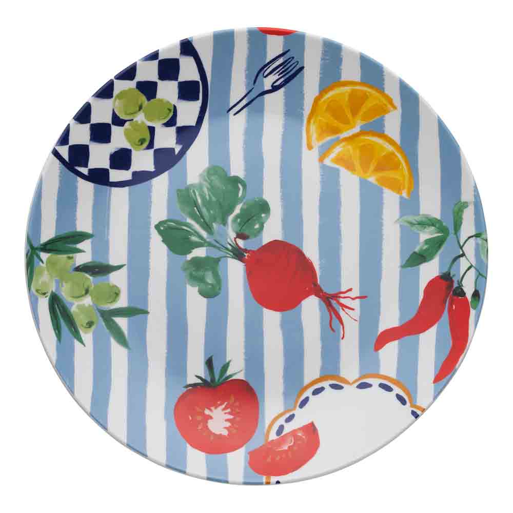 The Porto Cucina Round Platter 30cm is bursting with personality and will leave a lasting impression on your guests. The vivid colours, bold patterns and expressive illustrations of Porto’s Cucina collection infuse a rich Mediterranean flavour to your meal times. The crisp white porcelain offers the perfect base to elevate the evocative artwork, while detailed borders and uplifting motifs complete the look of each piece. Use this platter at your next dinner party for breads, cheeses, or cakes. With functionality in mind, this Round Platter is conveniently microwave and dishwasher safe. Mix and match designs to build a collection using the coordinating Porto Cucina range.