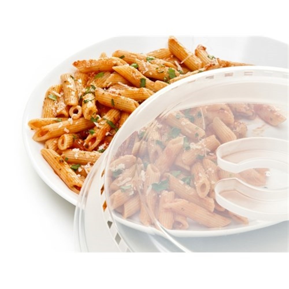 - Finger grips in the centre allow you to easily lift the microwave food cover