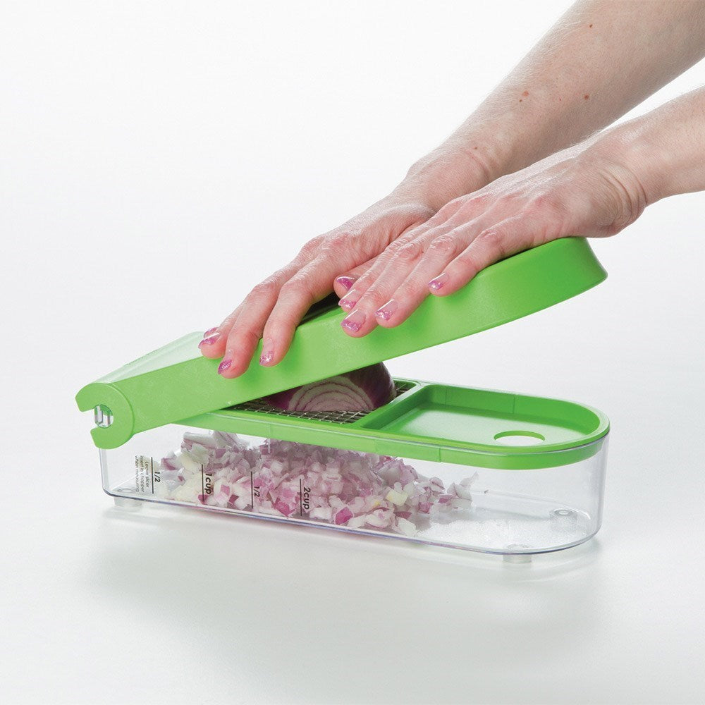 Take the tears, frustrations, and accidents out of your meal prep and dice your onions, tomatoes, capsicum, and more with the Progressive Prep Solutions Onion Chopper. With a single-press function, the Progressive Prep Solutions Onion Chopper can cut your preparation time in half, producing perfectly diced veggies with minimal effort for salsas, guacamole, pasta sauces, salads, and more. Made with food safe, BPA-free plastics and fitted with a sharp stainless steel cutting grid, the Progressive Pre Solutions Onion Chopper collects and measures up to 2 cups of chopped veggies for mess-free meal prep.