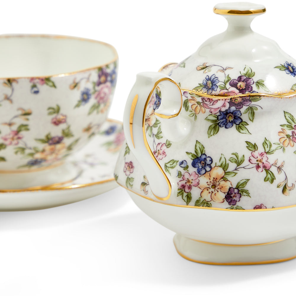 The 100 Years of Royal Albert collection celebrates over a century of outstanding design, floral heritage and tea drinking. This Tea For One set features the English Chintz design which is typical of the style most popular in the 1940s - decorated in a rich tapestry of roses, forget-me-nots and violets.