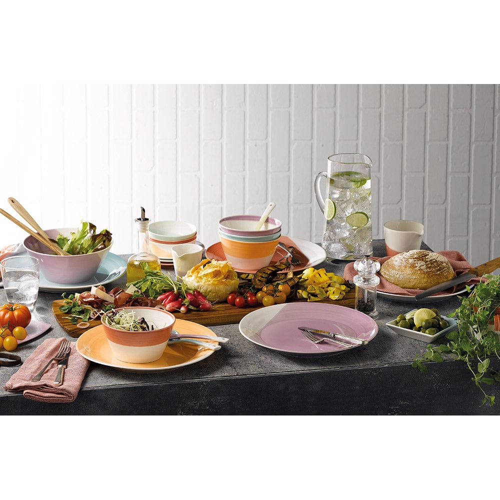 Colours and textures unite with the beautifully bold and bright Royal Doulton 1815 16 Piece Dinner Set Bright. Crafted from quality porcelain, the Royal Doulton 1815 16 Piece Dinner Set Bright boasts resistance to chips and cracks, ensuring it has a place on your table for many delicious meals shared with loved ones and friends. With a subtle artisan texture and earthy white base colour the dishes offer an inviting hand-made feel, while their vivid half dip dyes are finished in a stunning glaze to make the colours really pop. Comprising of four dinner plates, four salad plates, four pasta bowls and four cereal bowls, this set contains all the components to set a beautifully unique dining table, whether its everyday meals or a relaxed dinner party atmosphere.