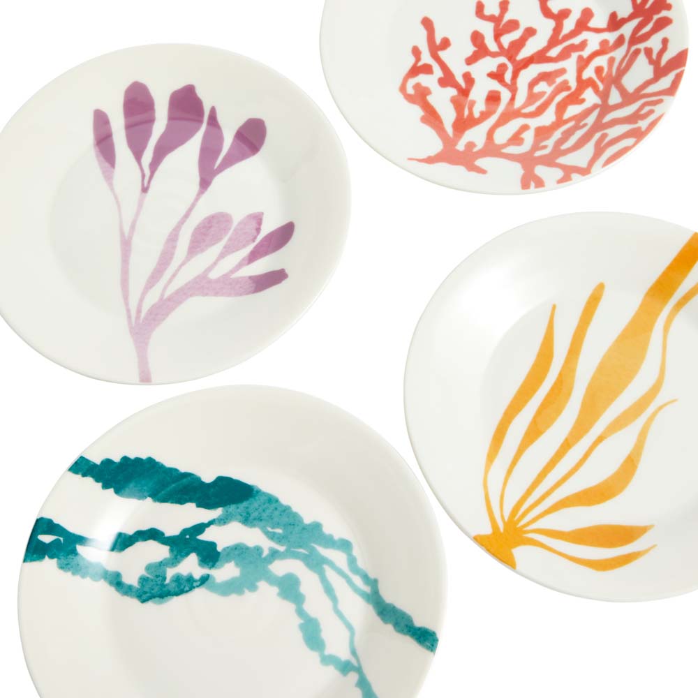 Add colour and interest to your side dishes with this Set of Four 1815 Bright Mixed Pattern Side Plates. Crafted from durable porcelain for added chip resistance, these plates come decorated in four playful patterns, each with its own related colourful glaze.