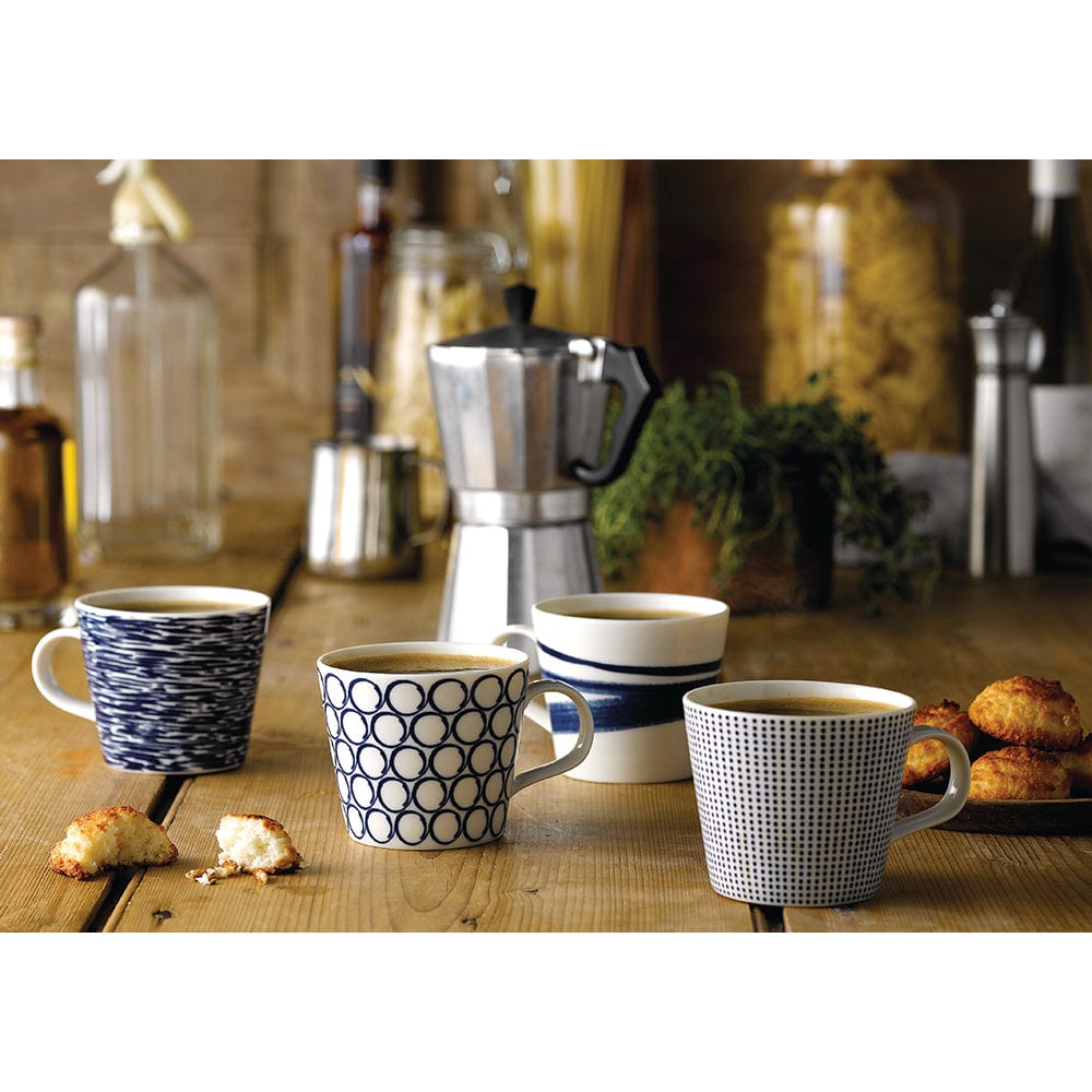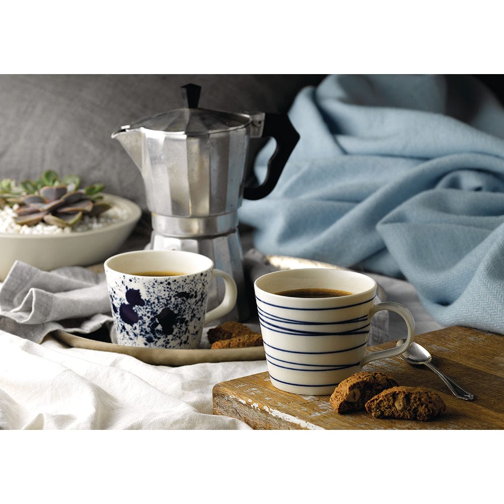 Embark on a culinary journey that embodies the best of the high seas with the Royal Doulton Pacific Set of 6 Mugs 260ml. Utilising bold, cool blues and variations on a nautical theme to capture the gentle irregularities of the textures and landscapes of the seaside, the Royal Doulton Pacific Set of 6 Mugs 260ml is a stunning addition to any table for casual and fine dining affairs. Made from porcelain, the Royal Doulton Pacific Mugs are resistant to bumps and knocks and feature a mix of dot, line, splatter and geometric patterns that seamlessly coordinate with the other items in the Pacific range. Perfectly suited to serving a refreshing coffee or tea, hot chocolate, or decadent mug cakes, the Royal Doulton Pacific Mug Set perfectly incorporates your table with a touch of the sea and is dishwasher and microwave safe for complete convenience.