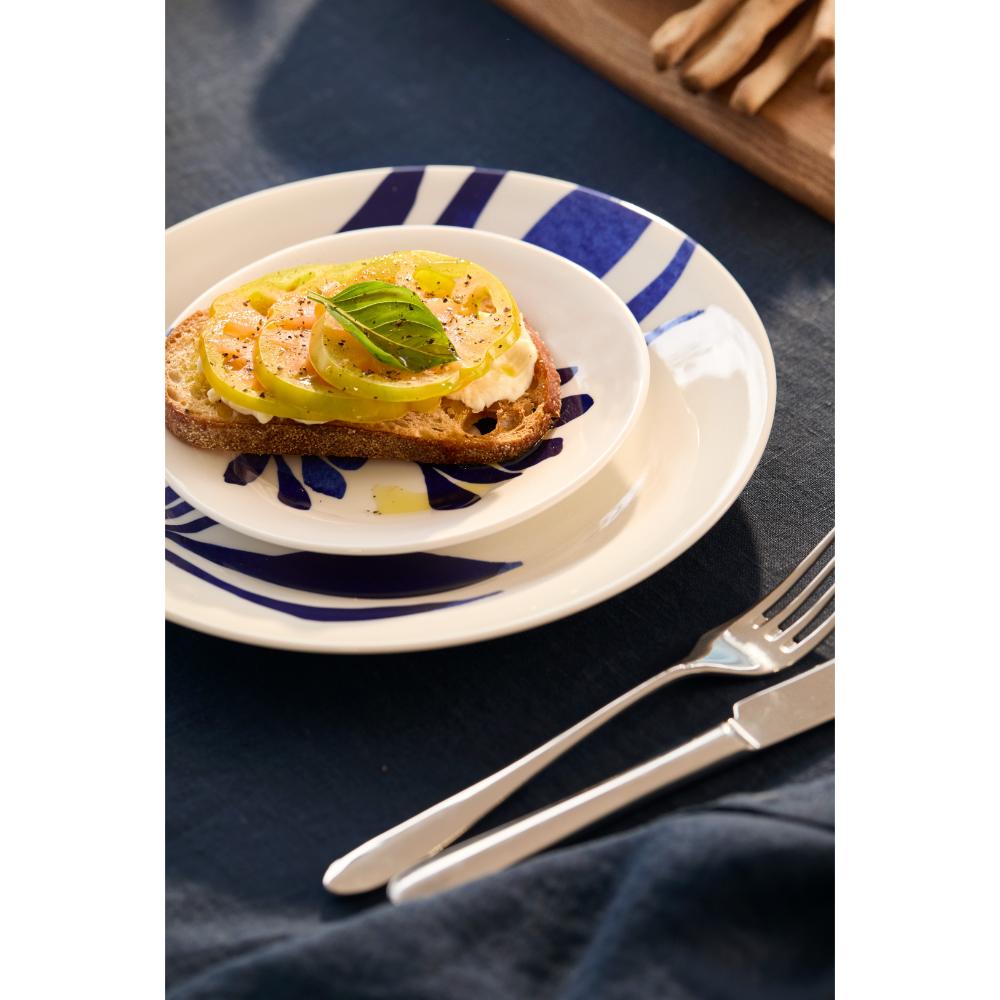 Invoke the serenity of the coast with this set of four 1815 Pacific side plates. Created from porcelain, each side plate in this set is decorated with a different motif of marine foliage in an inky blue colour.