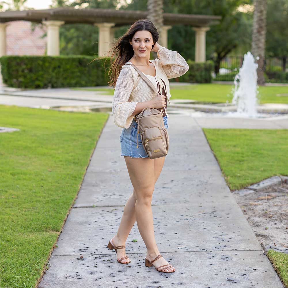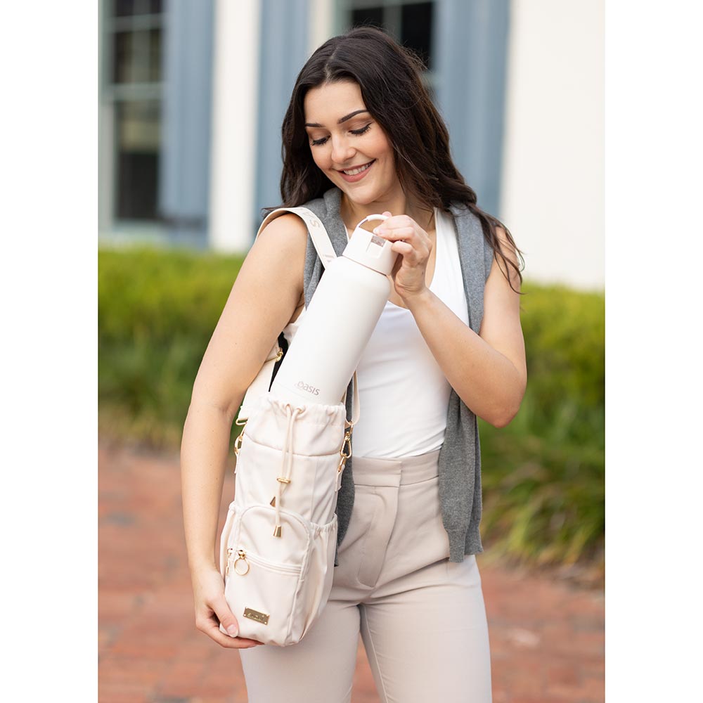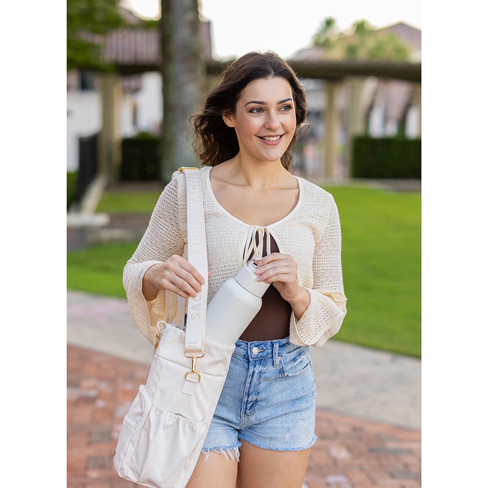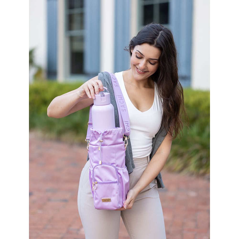 The perfect accessory for your everyday life, the deluxe crossbody insulated bottle bag from Sachi is etched with detail and sophistication inside and out. This fashionable bag, with a stylish adjustable, removable crossbody strap and drawstring closure, is ideal for transporting water bottles, wine, and accessories hands-free. Designed with a premium insulated, food-safe lining, this bottle bag will keep your drinks cool for longer, perfect for staying hydrated on those daily walks with the dog, school pickups, outdoor adventures, and much more.