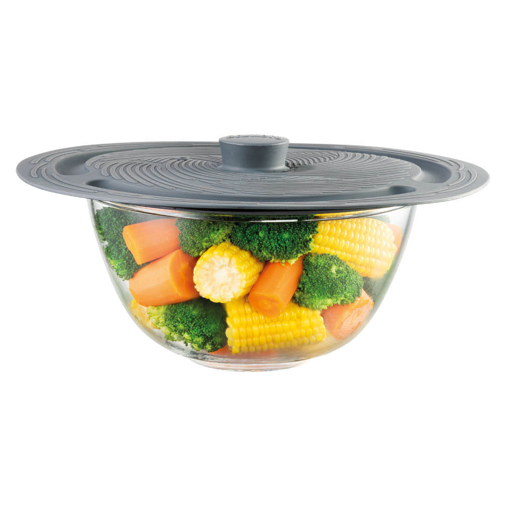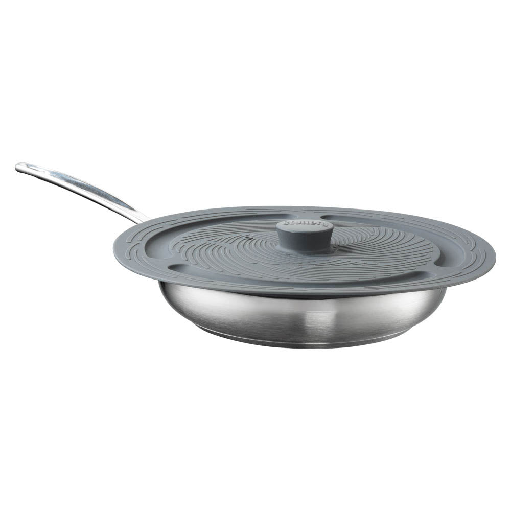 The Essential Universal Silicone Lid is the perfect way to prevent food splatter when stovetop cooking or microwave reheating. Heat-resistant up to 220 degrees, the Scullery® Essentials are a universal silicone lid with an easy-grip handle that is BPA-free and can be used on saucepans, woks, or frypans. The universal lid steam vent allows hot air to escape without letting liquids bubble over; it concentrates the heat in the pan while simmering, boiling, or steaming, keeping food moist and the inside of the oven clean when reheating. It is suitable for most round, smooth surfaces such as ceramic, glass, metal, wood, and plastic, and it is multi-fit for 16–32 cm pots, woks, frypans, or bowls. Reusable, the Scullery® Essential Universal Silicone Lid is oven, fridge, freezer, and dishwasher safe!