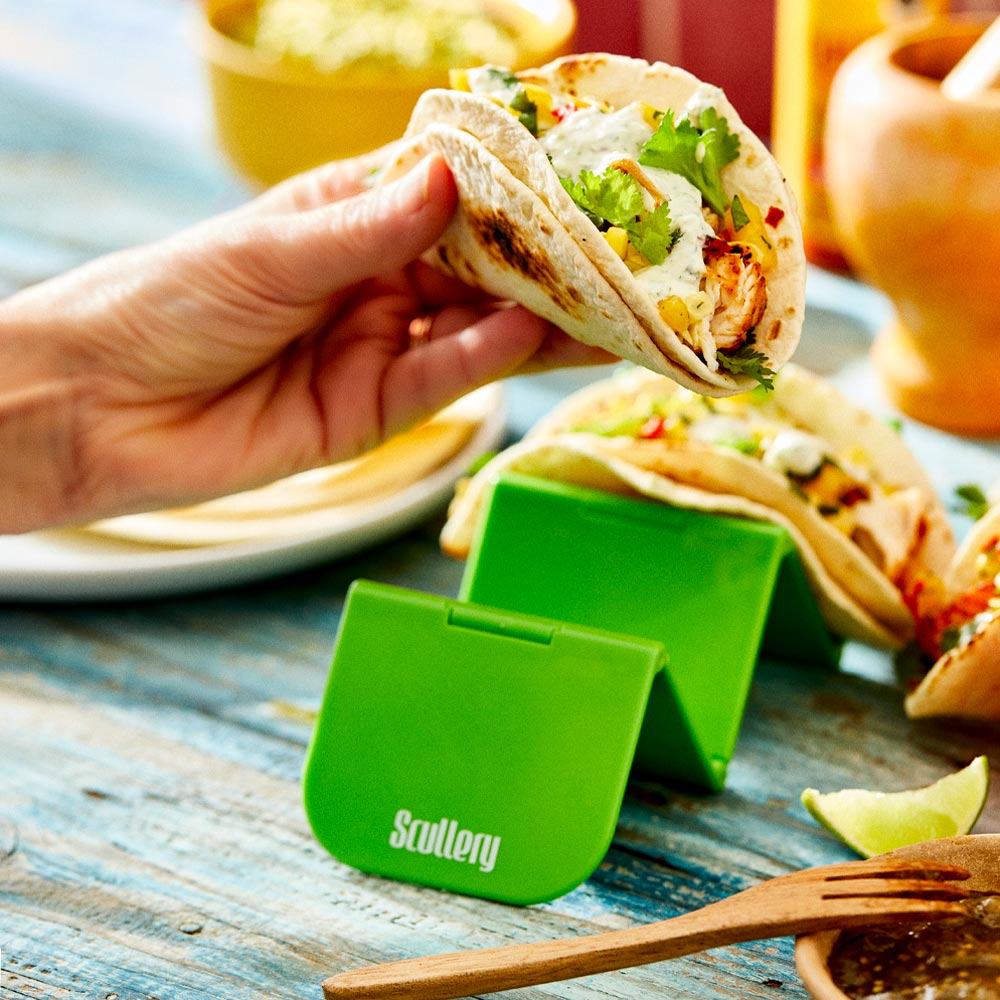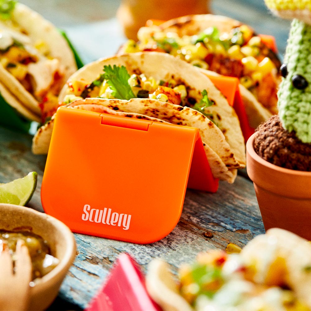 Make Taco Tuesday every day of the week with the Scullery® Foldable Taco Holder. Taco Tuesdays bring friends and families together, as the love of a tasty taco is shared by all. The Scullery® Foldable Taco Holder will make that bond stronger, as it conveniently holds your tacos in a colourful stand so you can serve and eat with ease. When not in use, it folds down into a compact size so you can store away neatly until the next Taco Tuesday! If you're finding yourself thinking it's time for Taco Tuesday, the Scullery® Foldable Taco Holder is for you!
